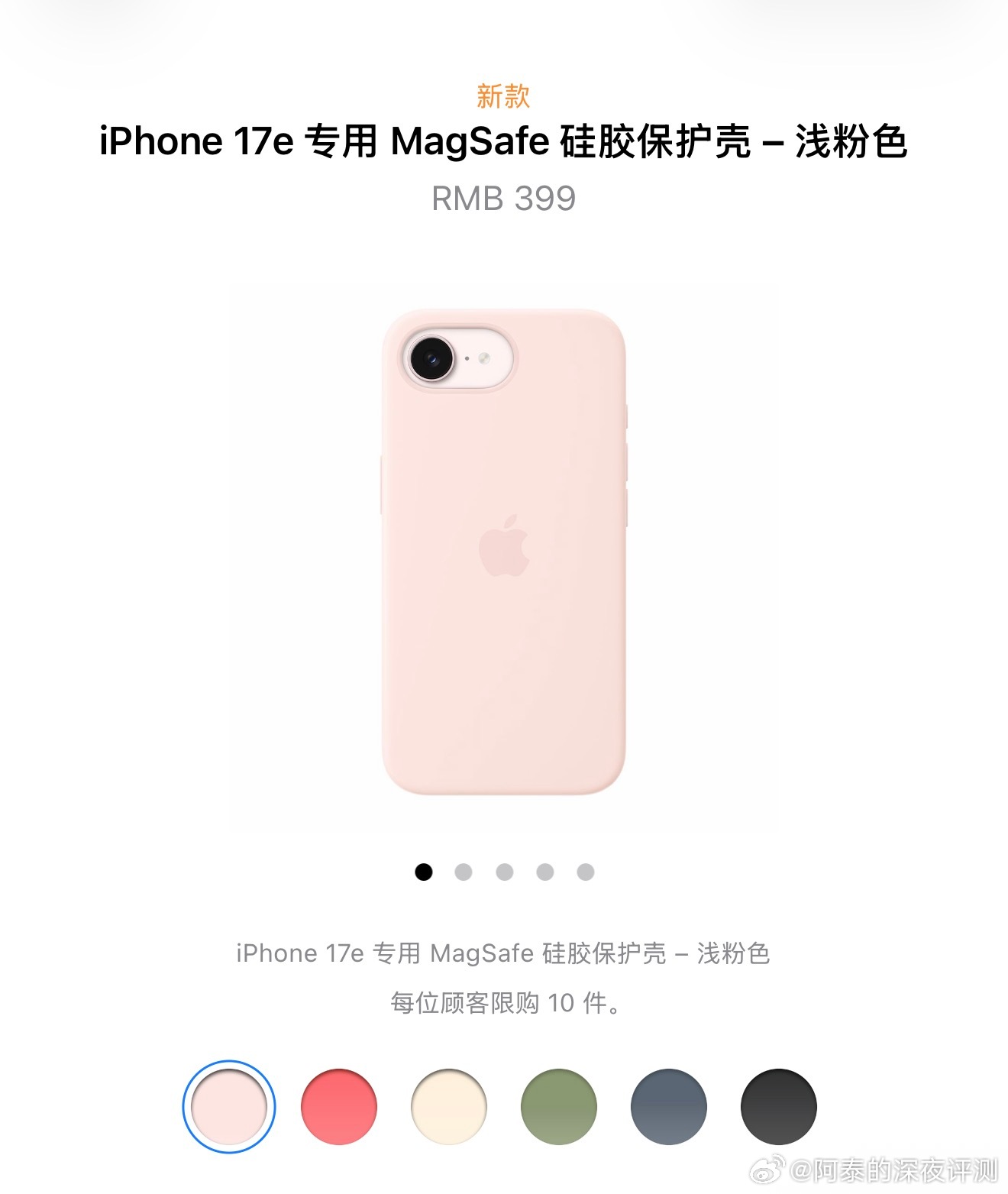 苹果推出大量粉色配件昨天就在官网看到了,很适合小姐姐们的配色!涵盖 iPhone17e 硅胶保护壳、新配色的斜挎挂绳等,还有iPhone 17 Pro系列的新配色。