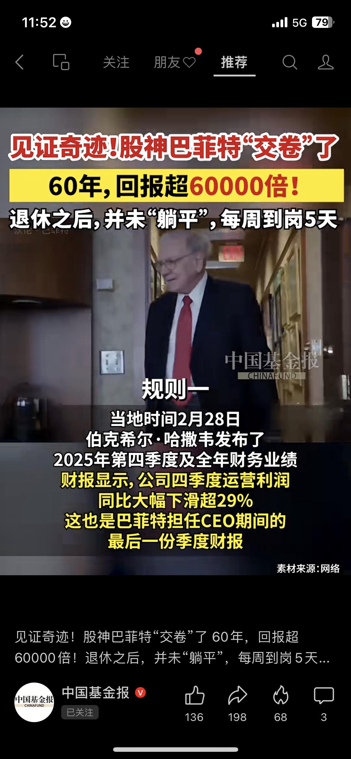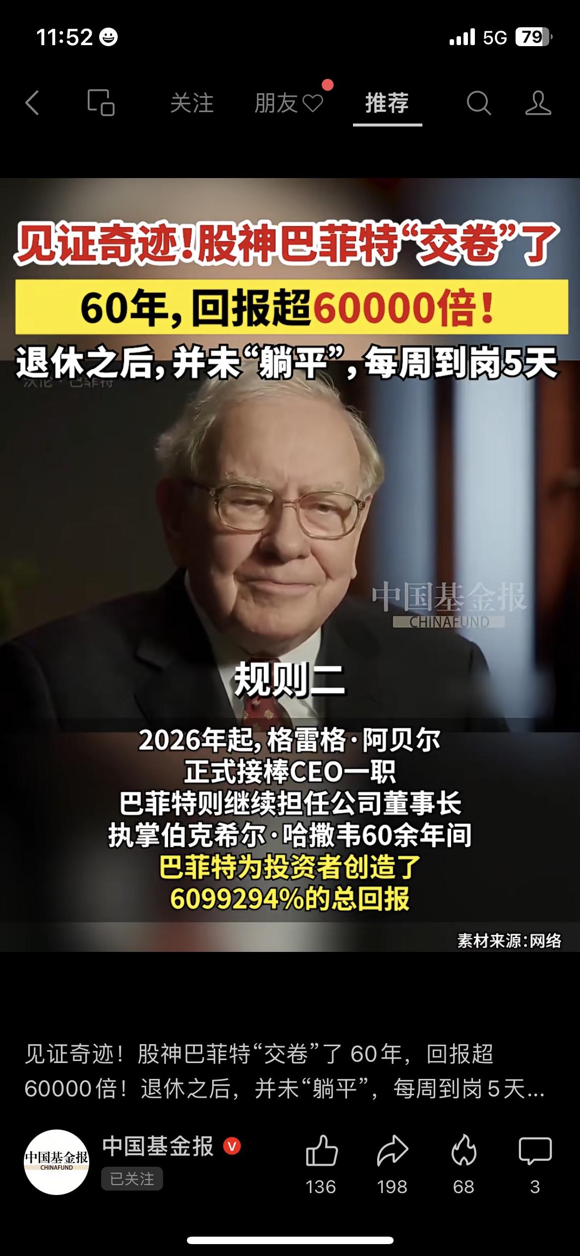 投资圈炸锅了:股神巴菲特,正式“交卷”了。 2026年起,阿贝尔接棒CEO,巴菲特退居董事长。执掌伯克希尔60余年,他创下了6099294%的总回报,年化19.7%,直接甩开标普500指数一倍。 但没人注意到,他最后一份季度财报里,公司运营利润同比下滑超29%。 我那做价值投资的朋友说:“巴菲特从不是靠预测市场赢,而是靠坚守原则。” 是啊,投资的本质,终究是认知的变现。 巴菲特交棒 价值投资