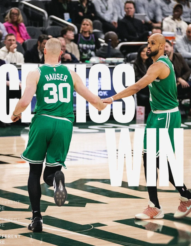 凯尔特人以108-81击败雄鹿。 赛后,凯尔特人官方更新动态,晒出一张赛场照与球迷分享。 “我们赢了!”凯尔特人官方附文道。 本场比赛,萨姆-豪瑟出场29分钟,得到14分4篮板1助攻1抢断1盖帽,投篮9中5。 德里克-怀特出场34分钟,得到18分1篮板9助攻1抢断,投篮18中5。