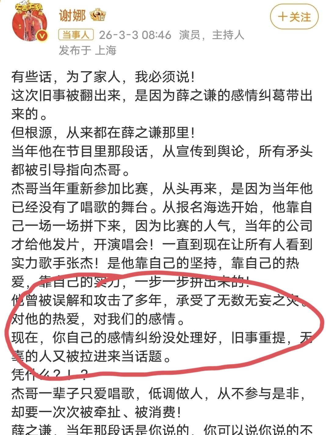 相比谢娜的霸气护夫,张杰给的糖也很甜! 今天,因为薛之谦,谢娜忍不住公开发微博,强烈要求他给张杰道歉。 谢娜这波力挺,太让人上头了,生动诠释了“爱人即战友”的婚姻内核。 相比谢娜的爱夫糖,张杰给出的宠妻糖也一样甜得发齁。 上月底,谢娜连用68个感叹号,恳请狗仔不要把镜头对准孩子。 张杰立马转发相关法规,力挺老婆。 谢娜生二胎时,陷入产后抑郁,张杰没有干巴巴地安慰。 而是用带伤坚持演,走心低鼓励谢娜走出低谷。 谢娜因主持风格被批“尬”,张杰发文解释,谢娜是为了配合节目。 去年跨年演唱会,不少粉丝抵制谢娜担任张杰的双人舞嘉宾。 张杰当场回应:做歌手前,要先做好男人,还带动全场呼喊谢娜名字。 这俩人时刻保持夫妻联动,互为对方的后背。 想问大家,这波真夫妻的糖,好不好嗑?欢迎一起嗑起来! 谢娜