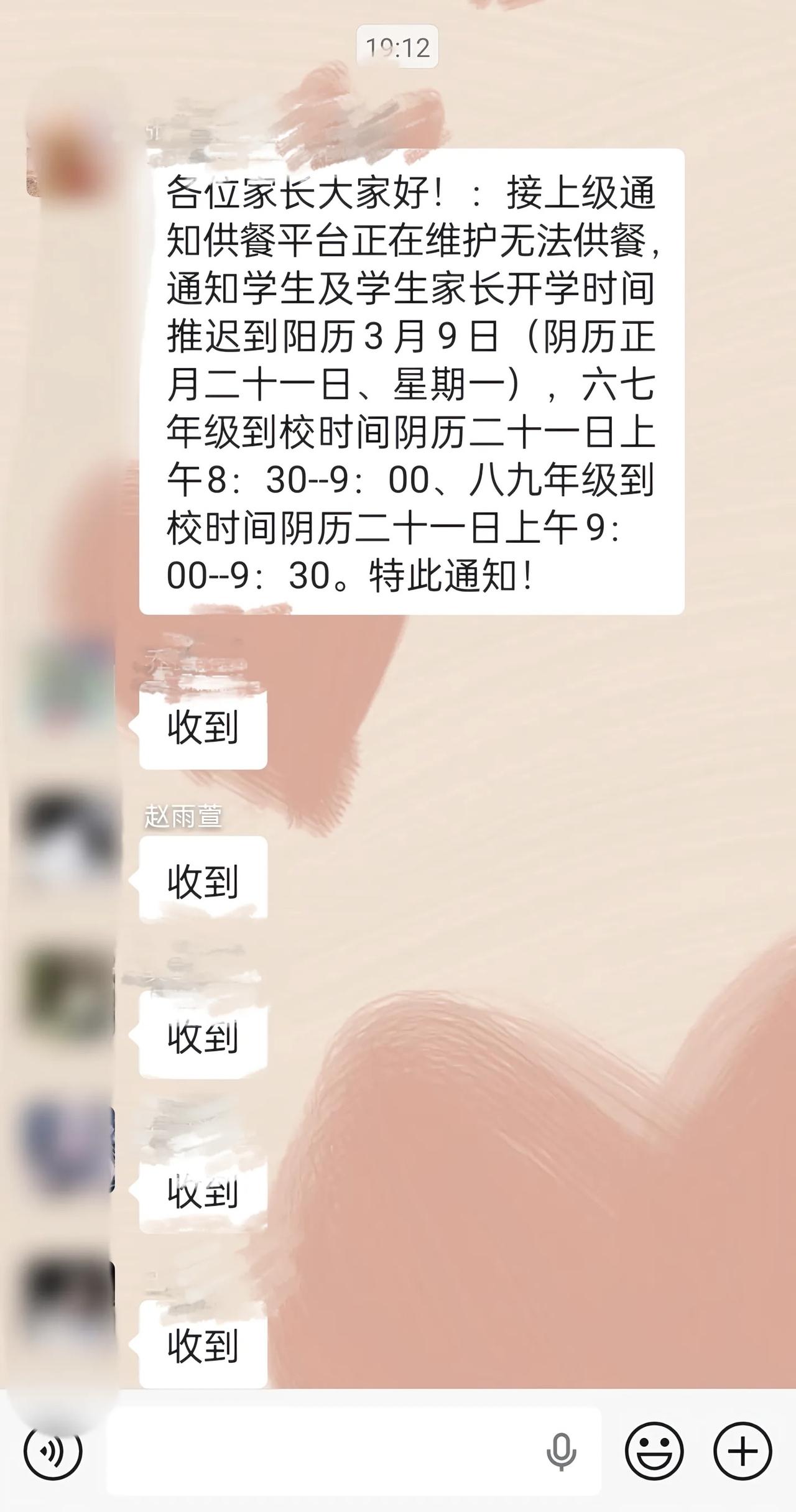 临近开学接到学校通知推迟开学,因供餐平台正在维护无法供餐,通知学生和家长开学时间推迟到3月9号农历21日。 家长建议全省推广,可以让孩子在家多几天趁机补补寒假作业,不过推迟开学是有原因,其他学校大部分在3月4号和5号两天来开学,其实也没差几天。 今年开始大部分中小学都会设置春秋季假期,增加孩子休息时间,以后的孩子读书压力会更小。
