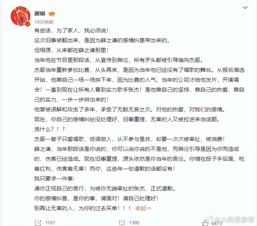 谢娜炮轰薛之谦!要求他对张杰道歉,揭开薛之谦张杰积怨多年内幕!