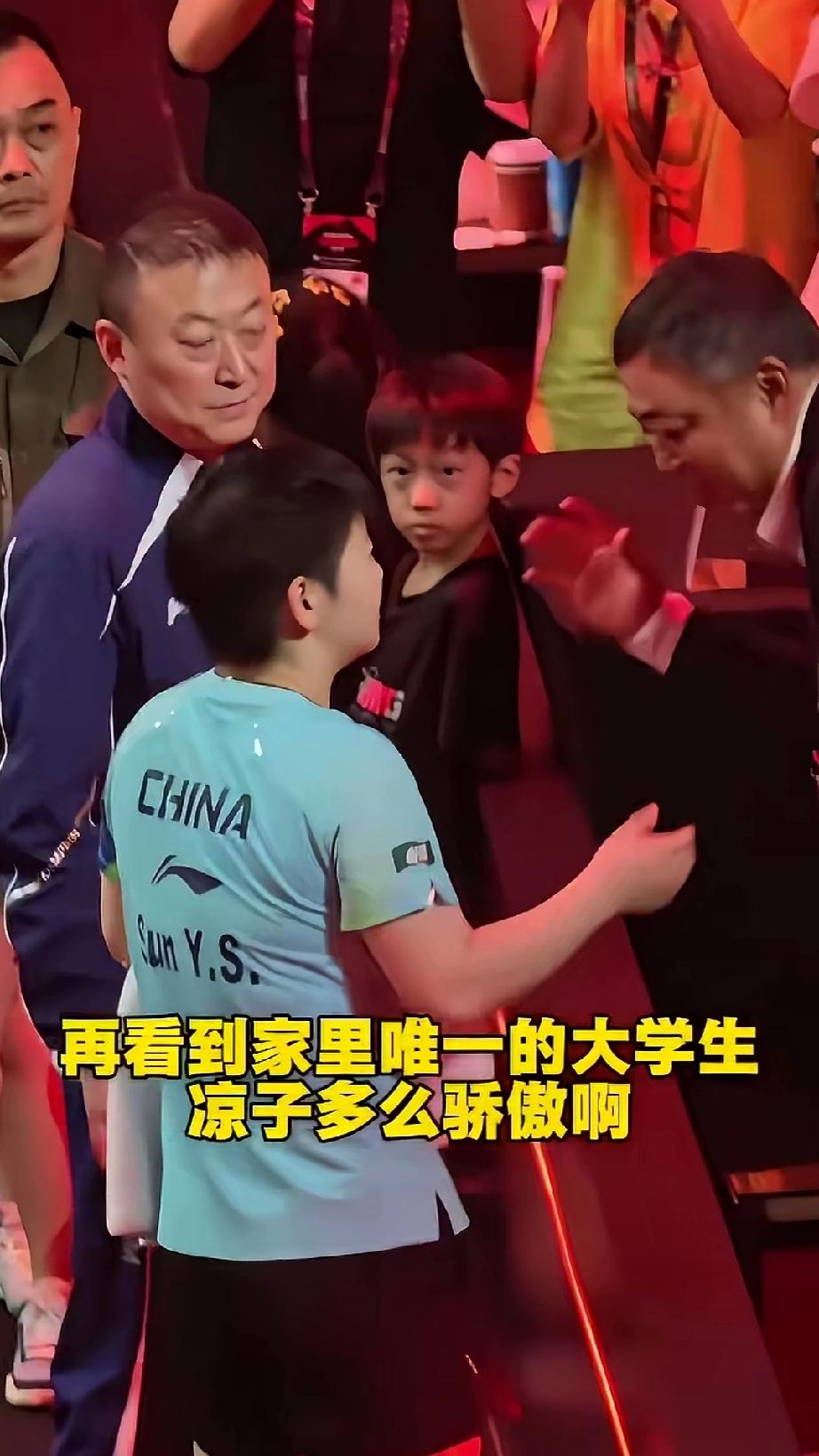 感动,家里唯一的大学生。 大满贯比赛期间,马琳拉着莎莎小跑,莎莎转头看到刘国梁,人没到笑容就在脸上展开了。手也长长的伸过去。国梁拉过莎莎,祝贺不断“打的不错。” 莎莎是国梁在位期间,培养出来的,虽然国梁已不在乒协,但是莎莎还是国乒家里唯一的大学生。 真棒!
