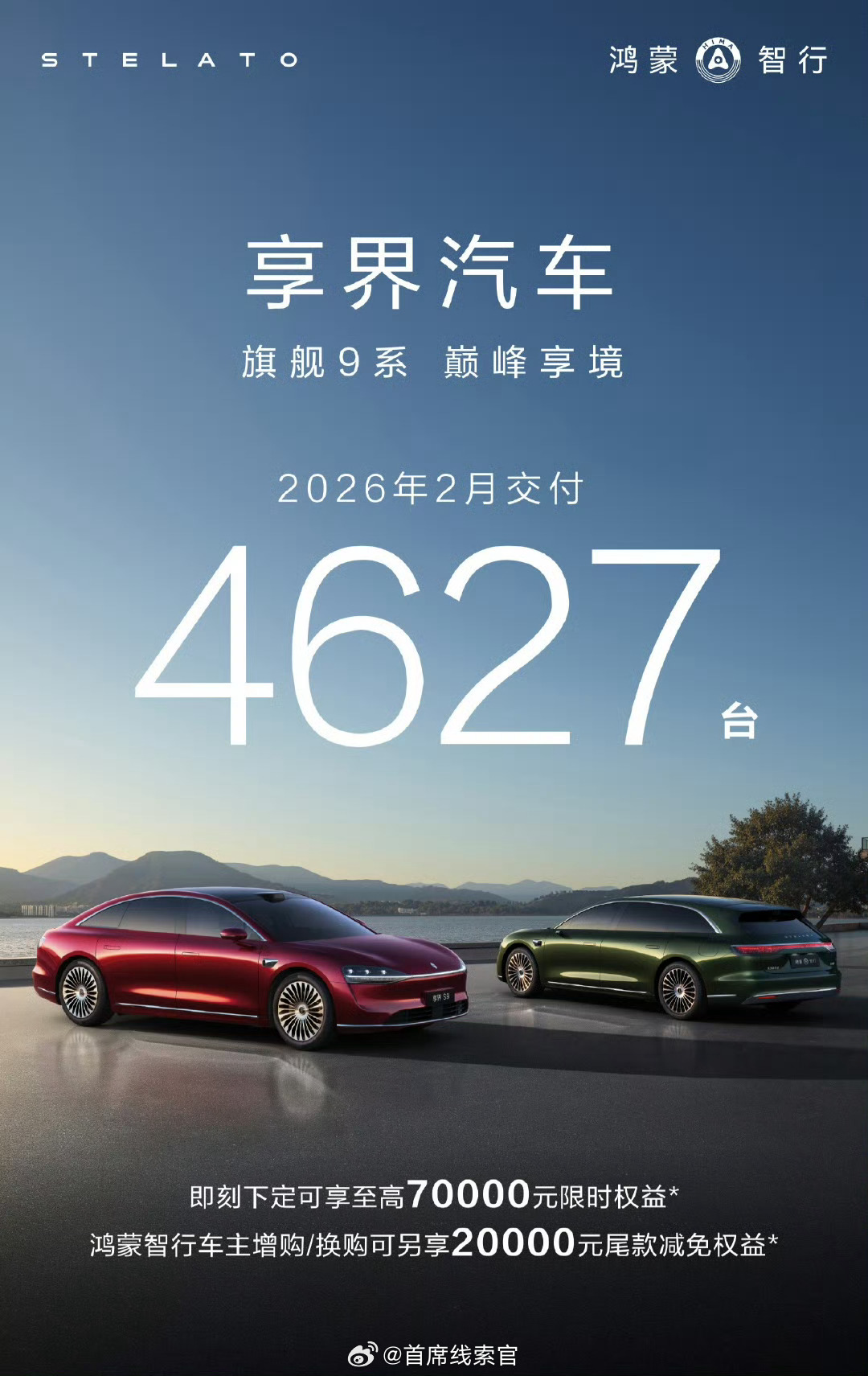 享界 S9 系列 2 月交付 4627 辆。