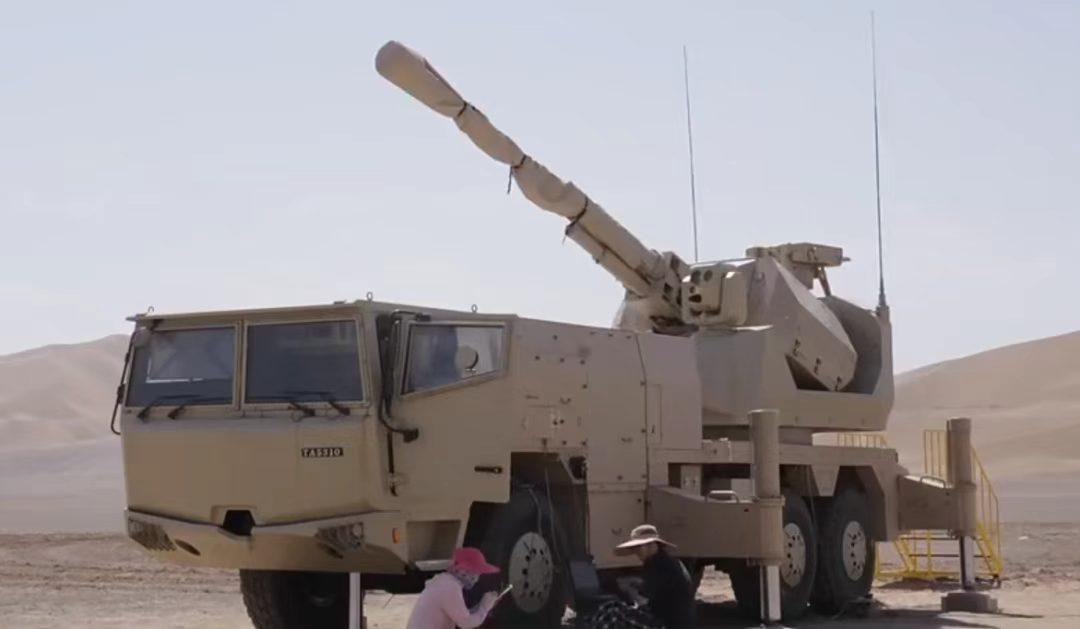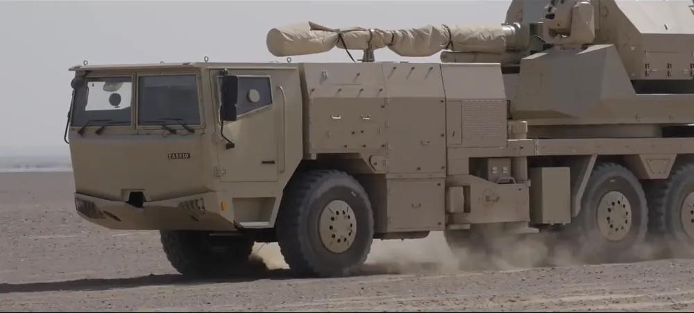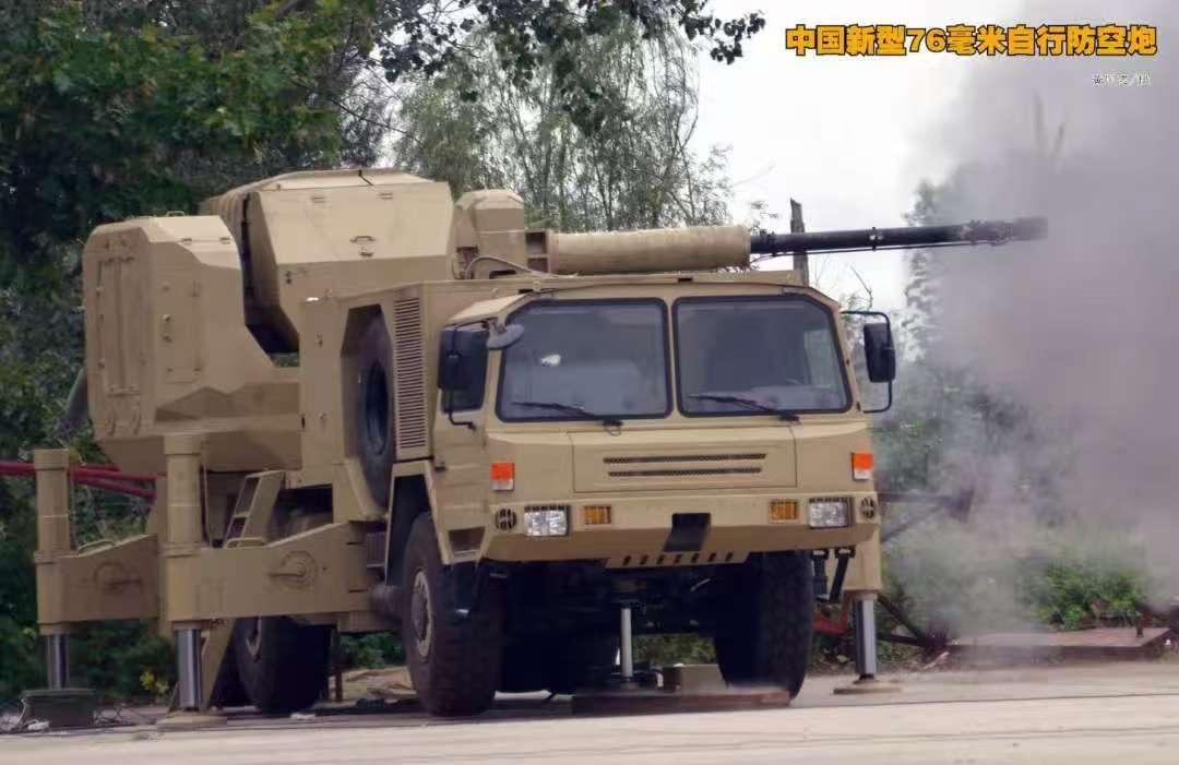 配备雷达(搜索距离20公里,跟踪距离15公里)、光电一体化无人炮塔和全新设计的驾驶室,看出口型LD76高炮系统和原型火炮的区别。 该火炮的技术源自海军的H/JP26舰炮,实际口径为76.2毫米,最大射高11500米,最大射程15500米,最大射速每分钟120发。对巡航导弹类目标有效拦截距离约4公里。 除了发射AHEAD可编程空爆弹药对空作战,它还可以使用钨合金脱壳穿甲弹来打击地面装甲目标,摧毁敌方坦克和装甲车。也能使用高爆杀伤弹来摧毁敌方堡垒和工事,必要时,还能发射炮射导弹,对敌方重要目标进行精确定点清除。 6门火炮组网对抗无人机蜂群时,拦截成功率可达91%