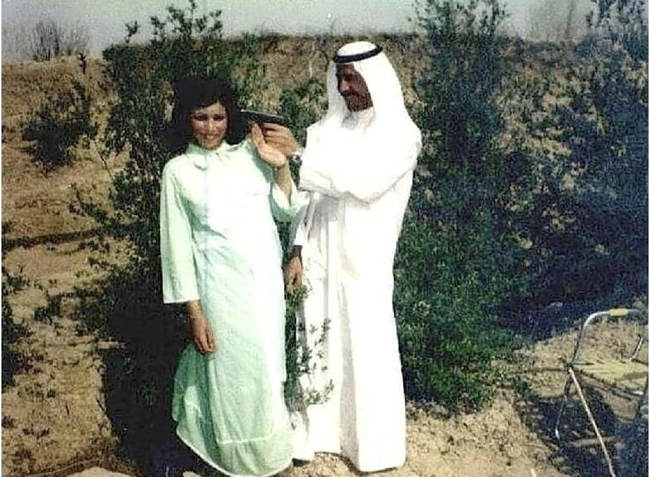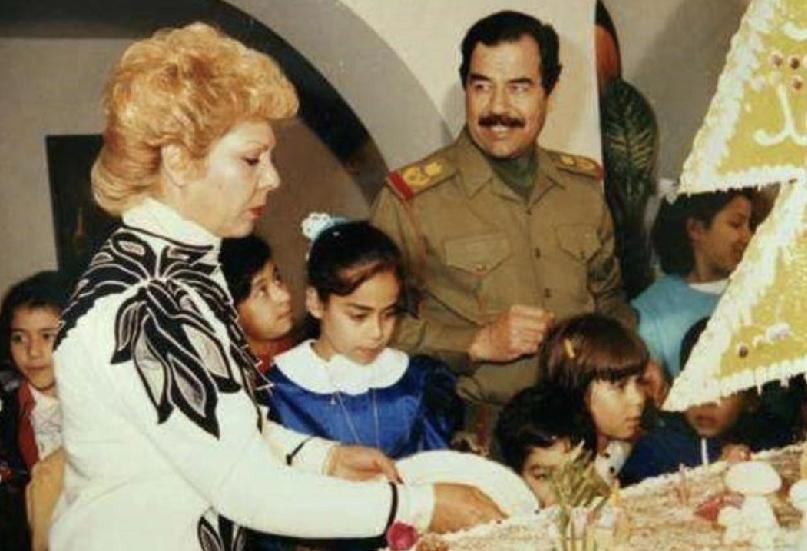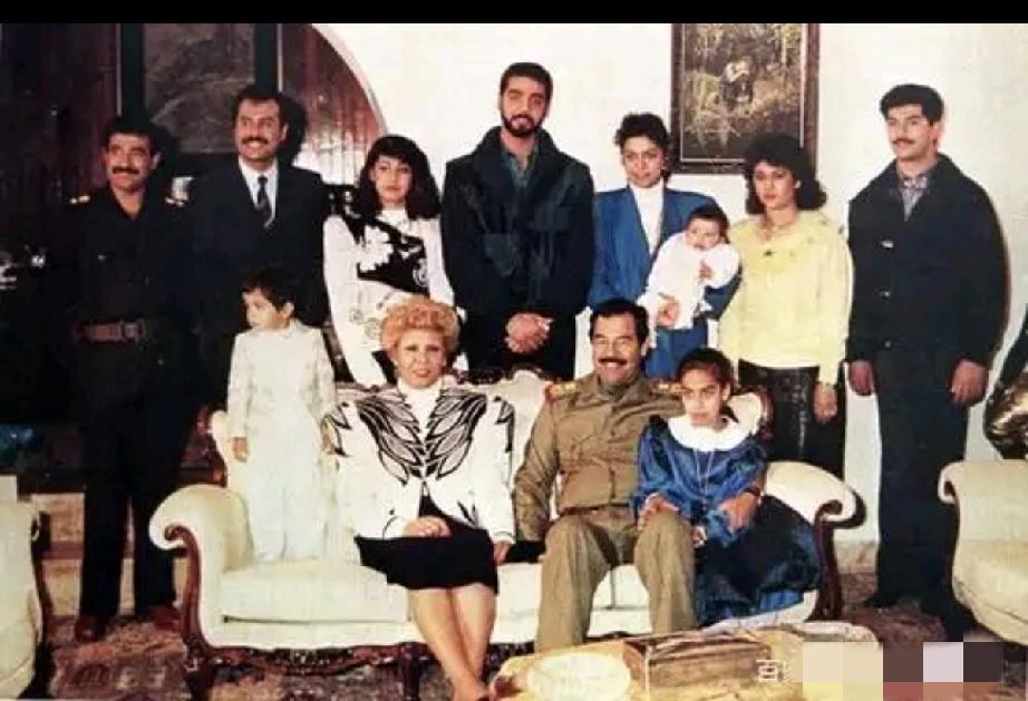 手拿雪茄的萨达姆有些霸气。 小时候的他,眼睛很大。 他的长相像他的妈妈。 他调情的方式很萨达姆,竟用手枪指着自己的女人,这个女人就是他的原配妻子。 他的原配是他的表妹, 为他生下了两子三女。 全家福中的萨达姆挺春风得意的。