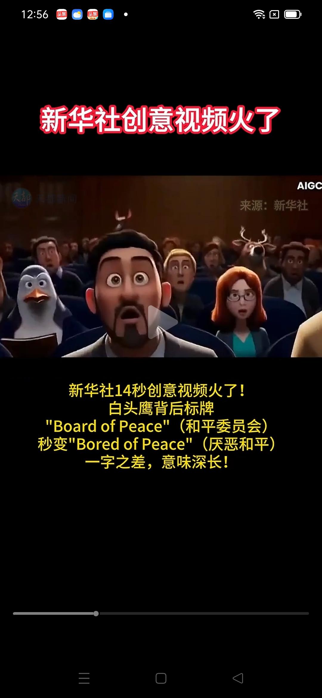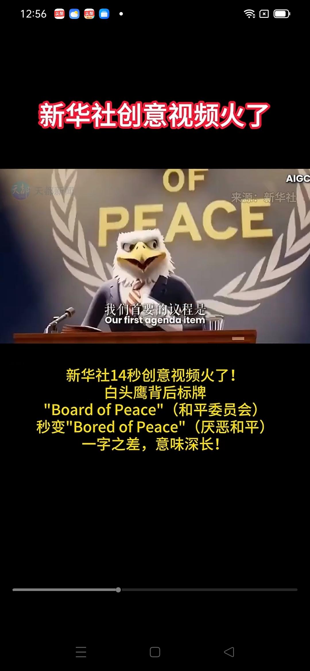 新华社14秒视频太厉害!美国“和平委员会”秒变“厌恶和平”,一大堆捧场国家太尴尬! 视频通过标牌文字变化讽刺美国“和平委员会”实为“厌恶和平”,视频在海外社交媒体24小时内浏览量破百万。 视频内容是:白头鹰宣布成立维护中东和平的“和平委员会(Board of Peace)”,标牌上“Board”掉落,露出“Bored”,变为“Bored of Peace(厌恶和平)”,白头鹰说首要议程是伊朗 ,面对全场惊愕称“为维护稳定,一以贯之”。 中东和平变成美以轰炸伊朗,杀死伊朗领袖,中东大乱,海峡封锁!中东和平呢?和平呢? 下面坐着20多个正式溜须国。如:蒙古国、以色列、阿联酋、沙特、卡塔尔、科威特、巴林、摩洛哥、埃及、约旦、土耳其、哈萨克斯坦、印度尼西亚、越南、柬埔寨、巴基斯坦、蒙古国等等! 这回,这些溜须国家尴尬了,太尴尬!没事在家多做“为人民服务”的工作,再不就多做一些与中国互利共赢的商贸工作,何必花着公款,千里迢迢到美国捧臭脚,没过几天就被打脸,贻笑大方! 新华社太厉害!这真是一场仅仅14秒的“降维打击”,堪称国际传播的神来之笔。它用最短的时间、最低的成本,撕开了美国所谓“维护和平”的最后一层遮羞布,既精准又具国际杀伤力。 面对美以袭击伊朗只有死战吗 美以联军的军事行动会持续多久 美以伊冲突对中东地区有何影响