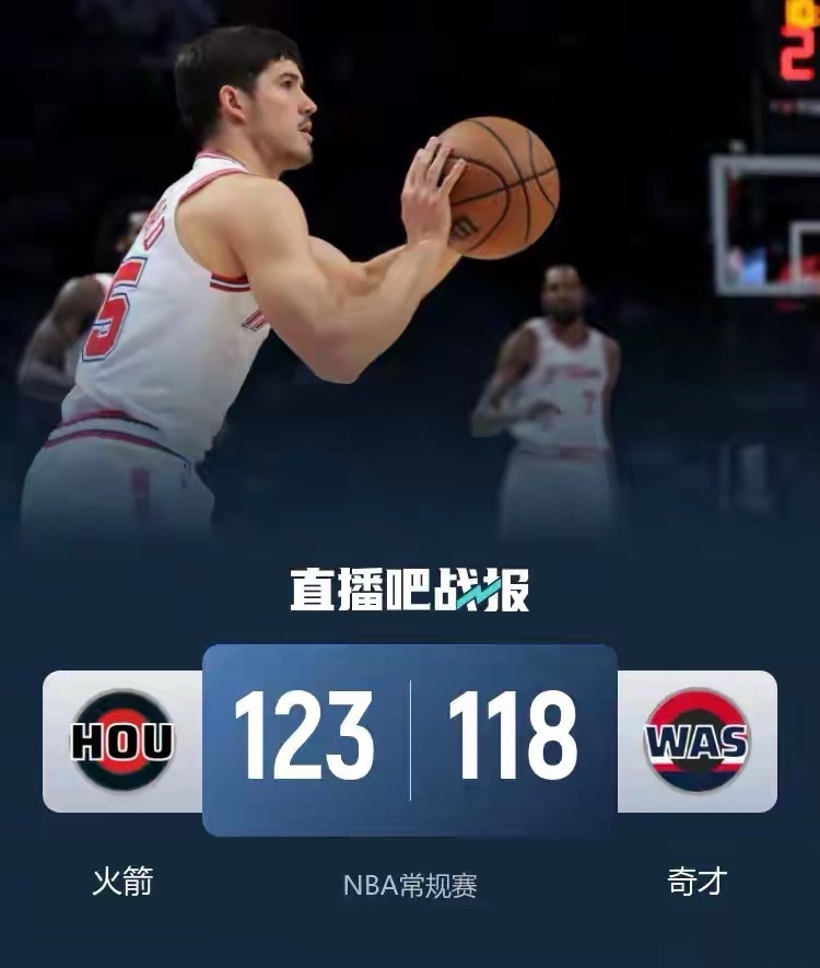 在NBA常规赛中,火箭客场123-118击败奇才,送对手5连败。奇才的申京、杜兰特与阿门-汤普森合砍84分,而火箭的谢泼德贡献19分7篮板10助攻6抢断的全面数据。