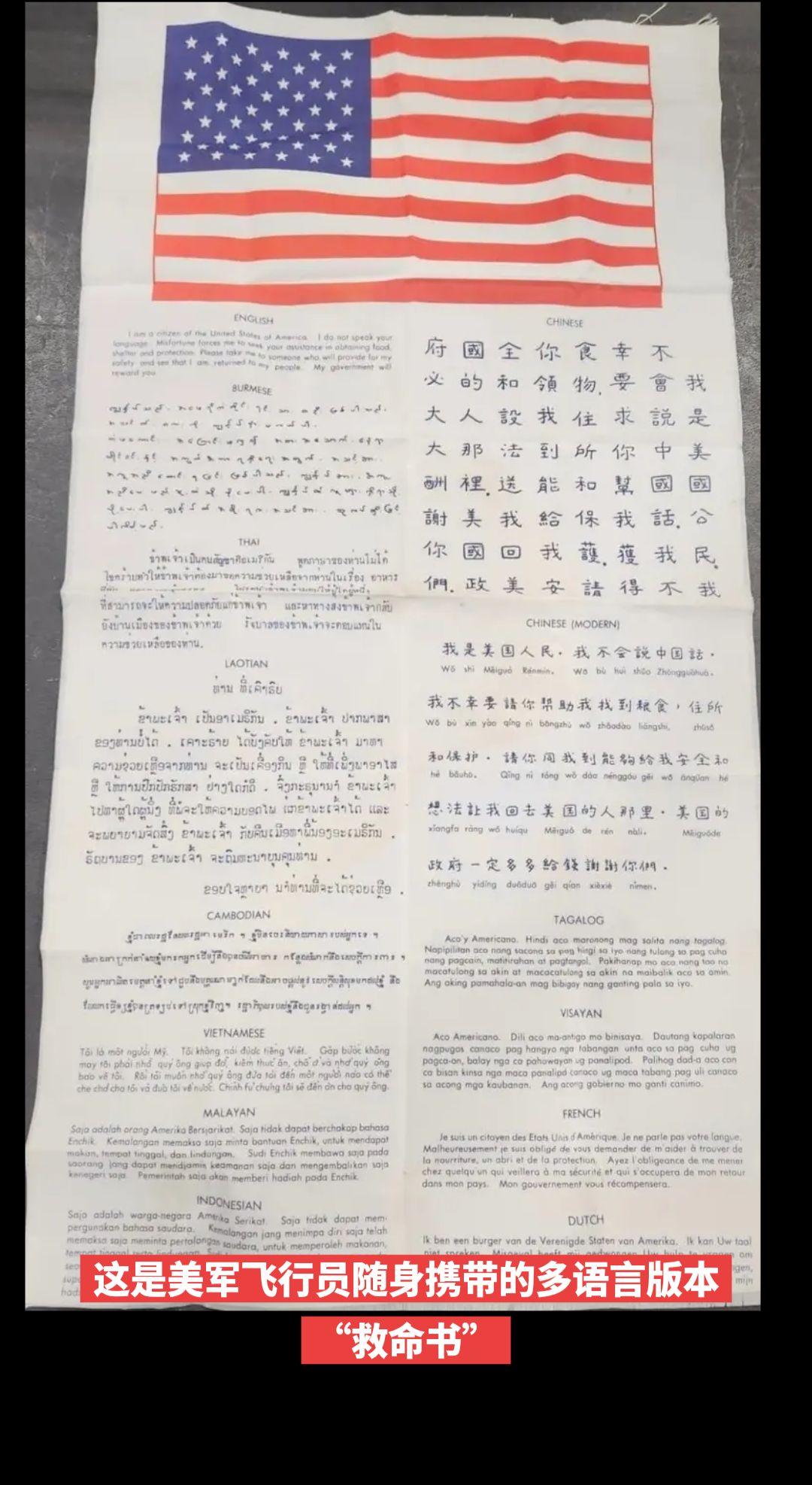 “救命书”这是美军飞行员随身携带的多语言版本“救命书”