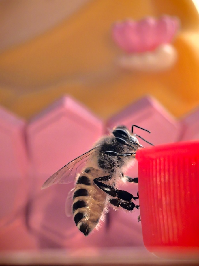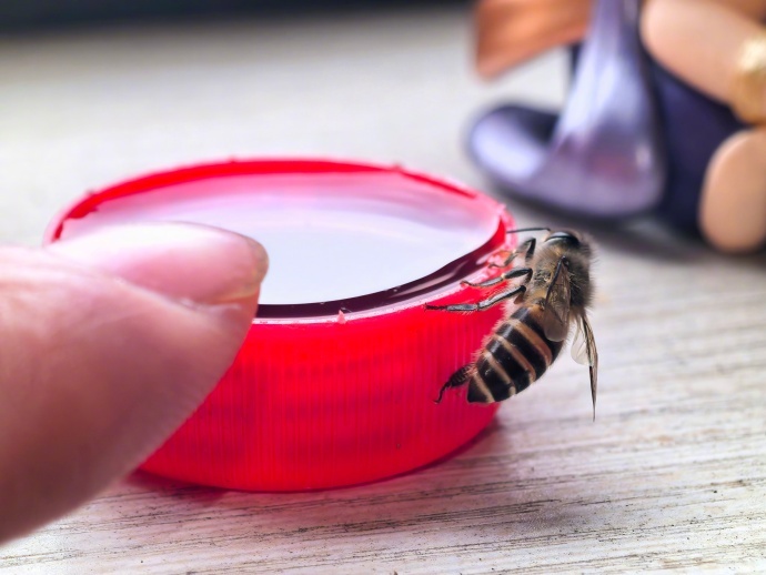 这只小蜜蜂每天都来偷喝,感觉真勤劳,给它拍张艺术照