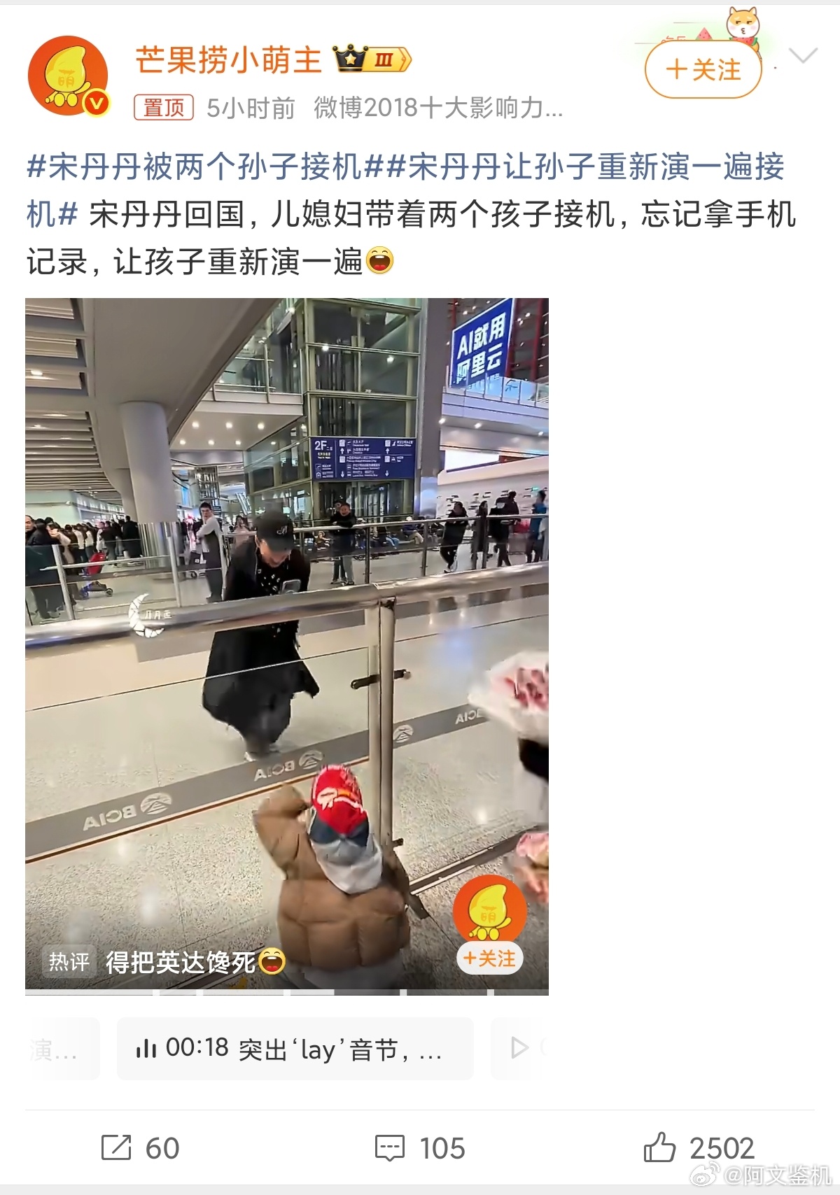 宋丹丹让孙子重新演一遍接机这种热搜太无语了,没必要过分解读,就是一个奶奶看到很久没见的孙子,想把这美好的瞬间记录下来而已。