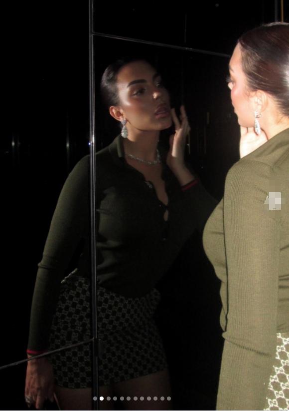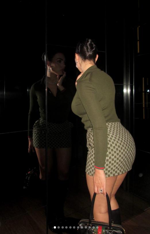 C罗未婚妻乔治娜又晒美照啦! 乔治娜自从正式获得C罗未婚妻的头衔后,人逢喜事精神爽,整个人更是美得光彩照人了。 说到乔治娜,她和C罗的爱情故事也是相当的让人羡慕了。 作为奢侈品的柜姐,卖货的时候遇到了高大帅气的钻石王老五C罗,年轻俏丽的乔治娜让C罗一见难忘,浪漫的爱情故事。 而乔治娜是幸运的,同时也是努力的,充实自己,发展自己,让自己变得更优秀。 如今的乔治娜的确变了好多,褪去了青涩,穿着一身橄榄绿针织衫搭配超短裙,身材曼妙。 作为C罗的未婚妻,如今的她也是相当贵气,硕大的钻石项链和耳坠,相当有气场。
