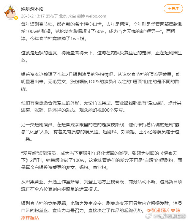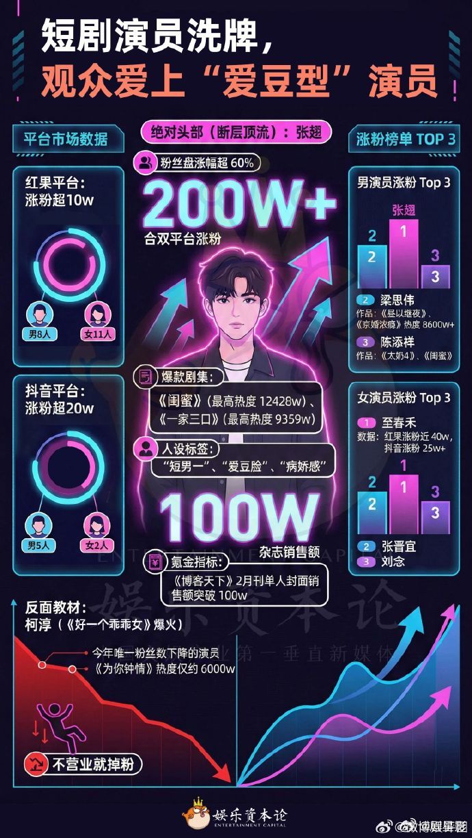 短剧演员爱豆化 因为有很多的短剧作品真的还是很精彩的,而且短剧演员偶像化转型,并且他们的商业价值也是在不断的提升。 短剧演员偶像化转型