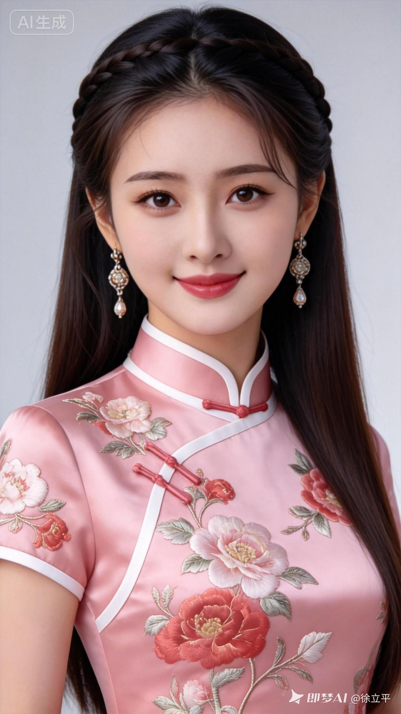 甜美少女风,粉色旗袍搭配精致发辫,优雅动人!🌸💖