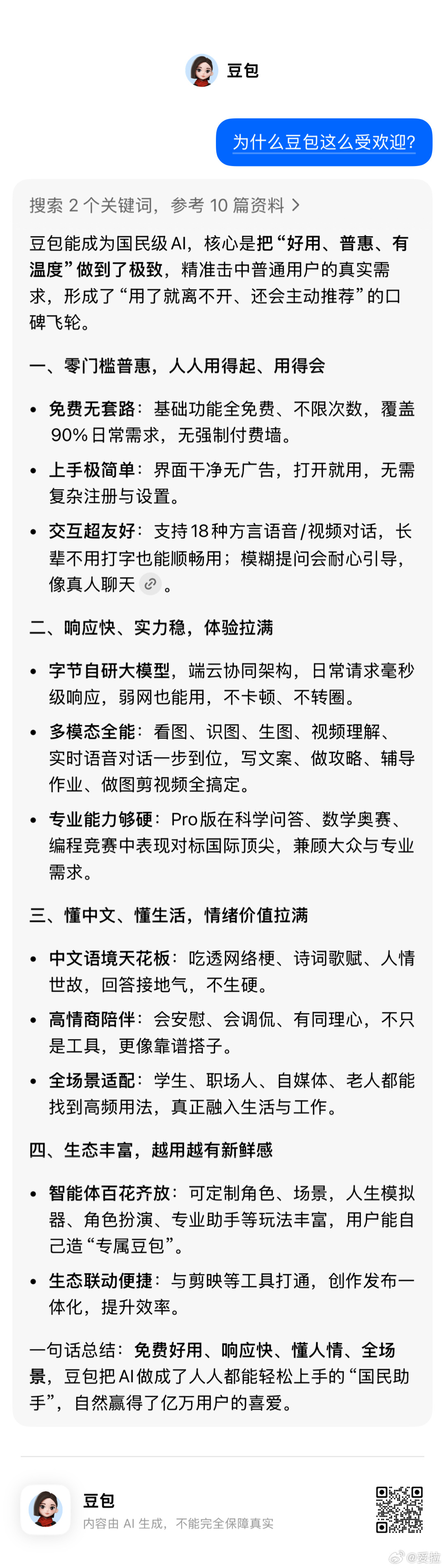 为什么豆包这么受欢迎《2025年AI应用层发展核心报告》显示,截至2025年12月,国内移动端AI应用月活已超7亿。其中豆包以2.26亿月活位居行业第一,用户规模显著领先。阿妥的ai观察科技先锋官