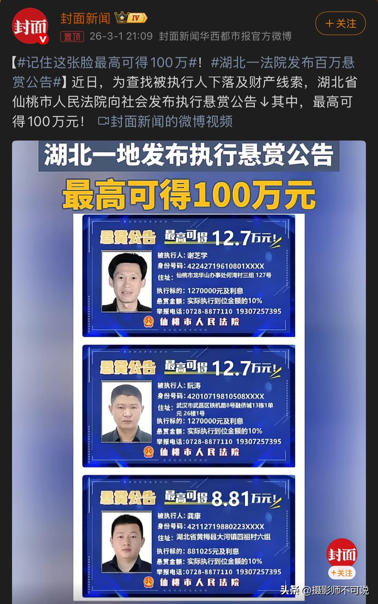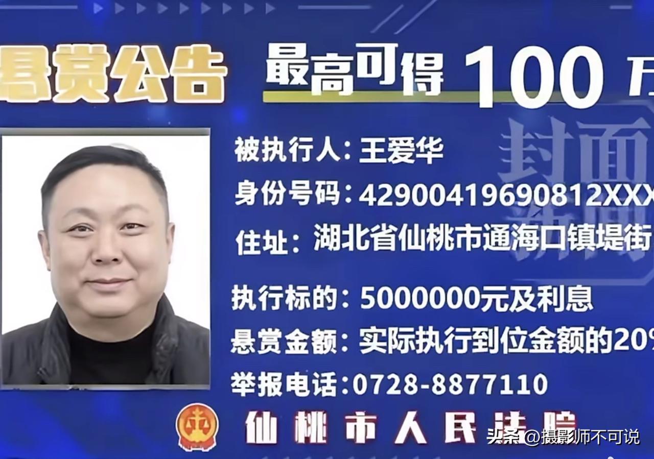 如果你记住这张脸很可能就会被一百万奖金砸中,说不定就是天上掉馅儿饼!这个人叫王爱华正在被悬赏最高100万查找,因为其涉及500万的标的及利息。看吧,这诚意还是十足的,100万就摆在你面前,花一点儿时间记住他,指不定哪天在大街上就遇到这哥们儿,到时候该怎么拿到这100万不用我多说了吧?!