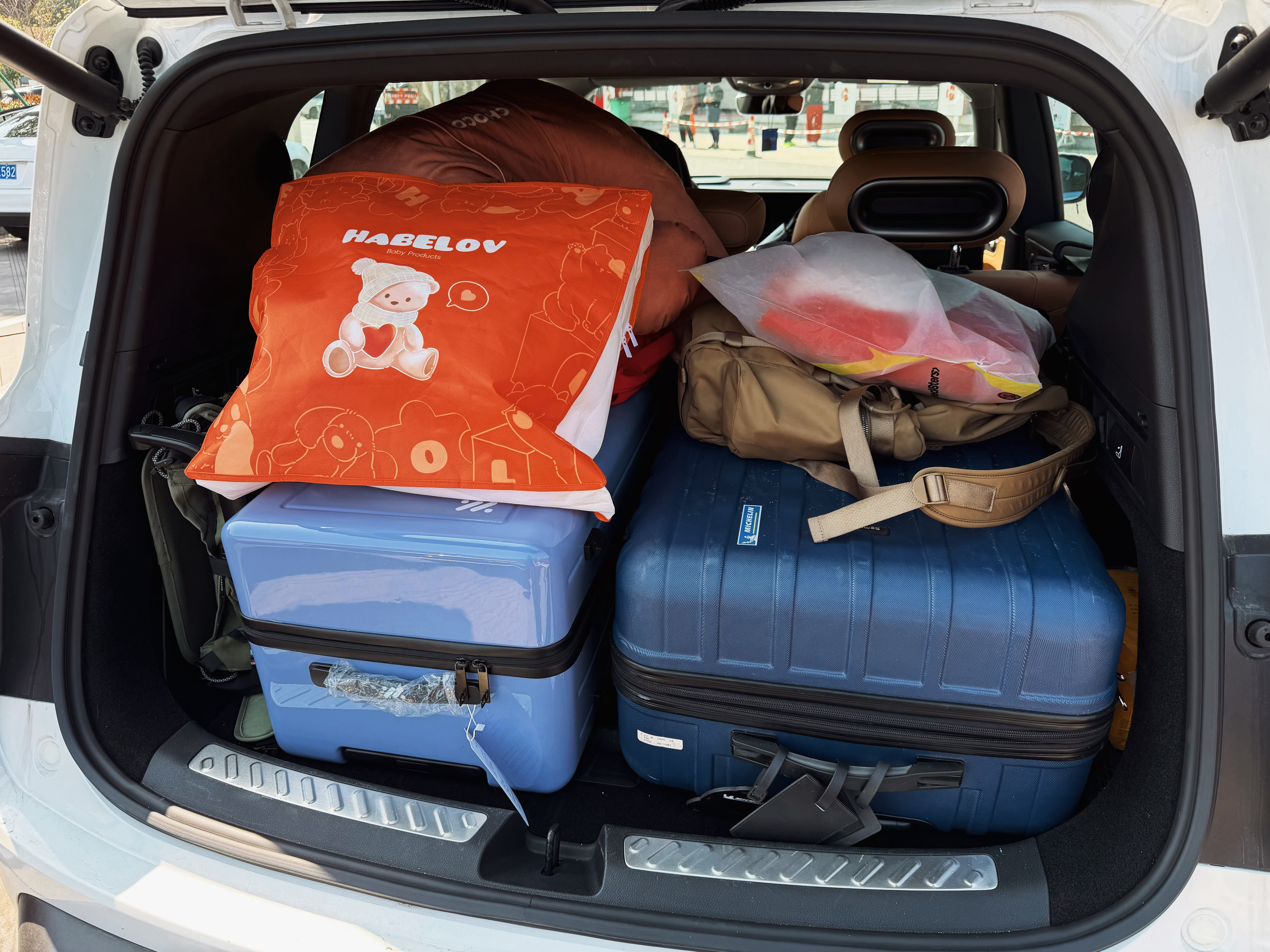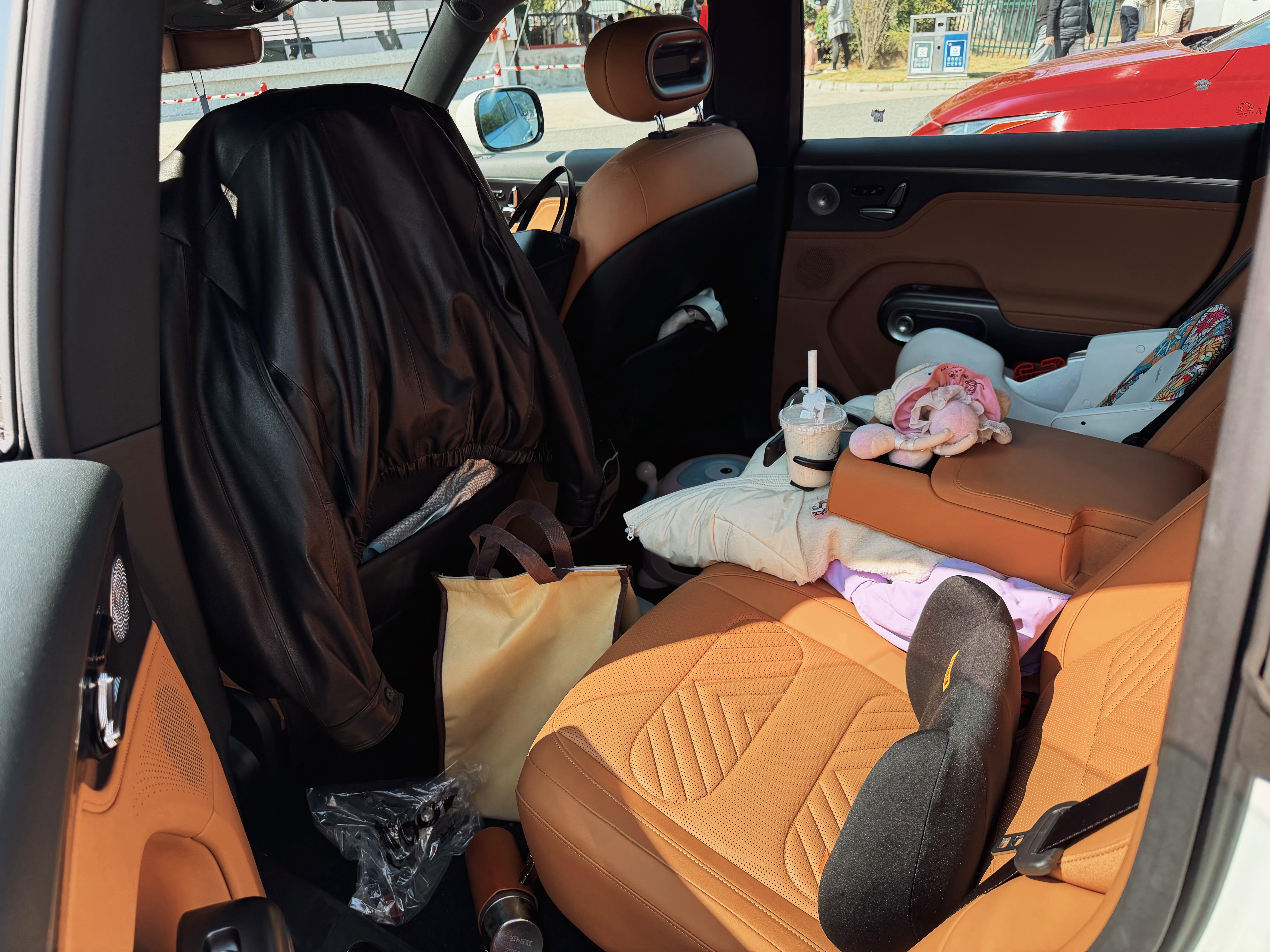 后排腿部空间、头部空间很好,有什么用呢?带小朋友出门有一个担心就是在高速上她忽然说“粑粑,我要嘘嘘,已经憋不住啦”,而我可能刚经过上一个服务区才1分钟。怎么办呢,备个小马桶咯,所以这的确需要一个比较宽敞的二排空间,以便施展… (这时候体现男孩子的好了…懂的都懂)