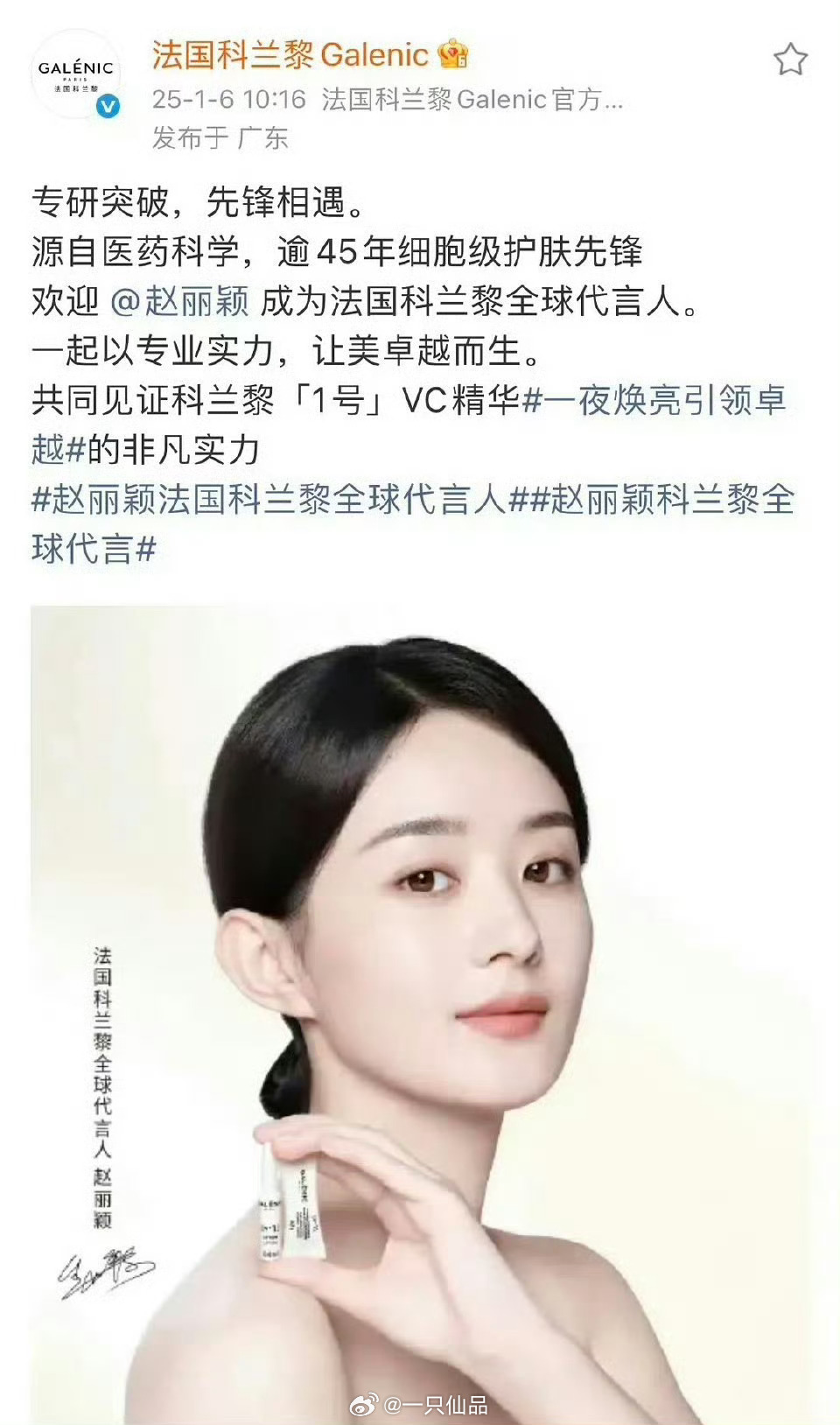 赵丽颖代言科兰黎后大涨超120%同时还连续上榜两年抖美妆排行榜前十这不仅是数字的跃升,更是国民女神强大影响力与带货实力的极致印证