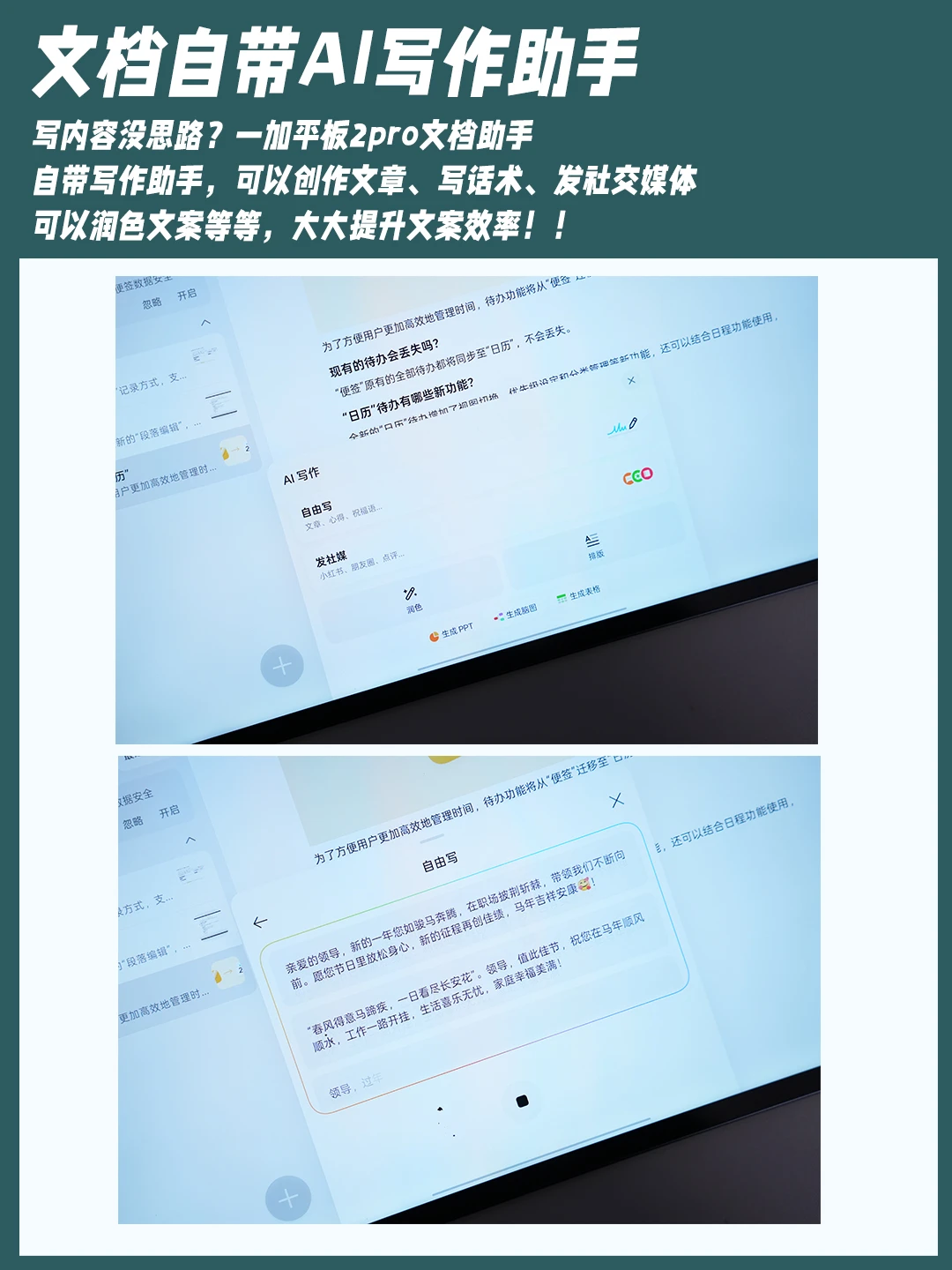 自带的 AI 写作助手,能创作文案、润色话术、写社交媒体内容,甚至能一键生成 PPT 创作大纲,再基于大纲快速导出完整 PPT 文件,大大提升办公或者写作的效率。