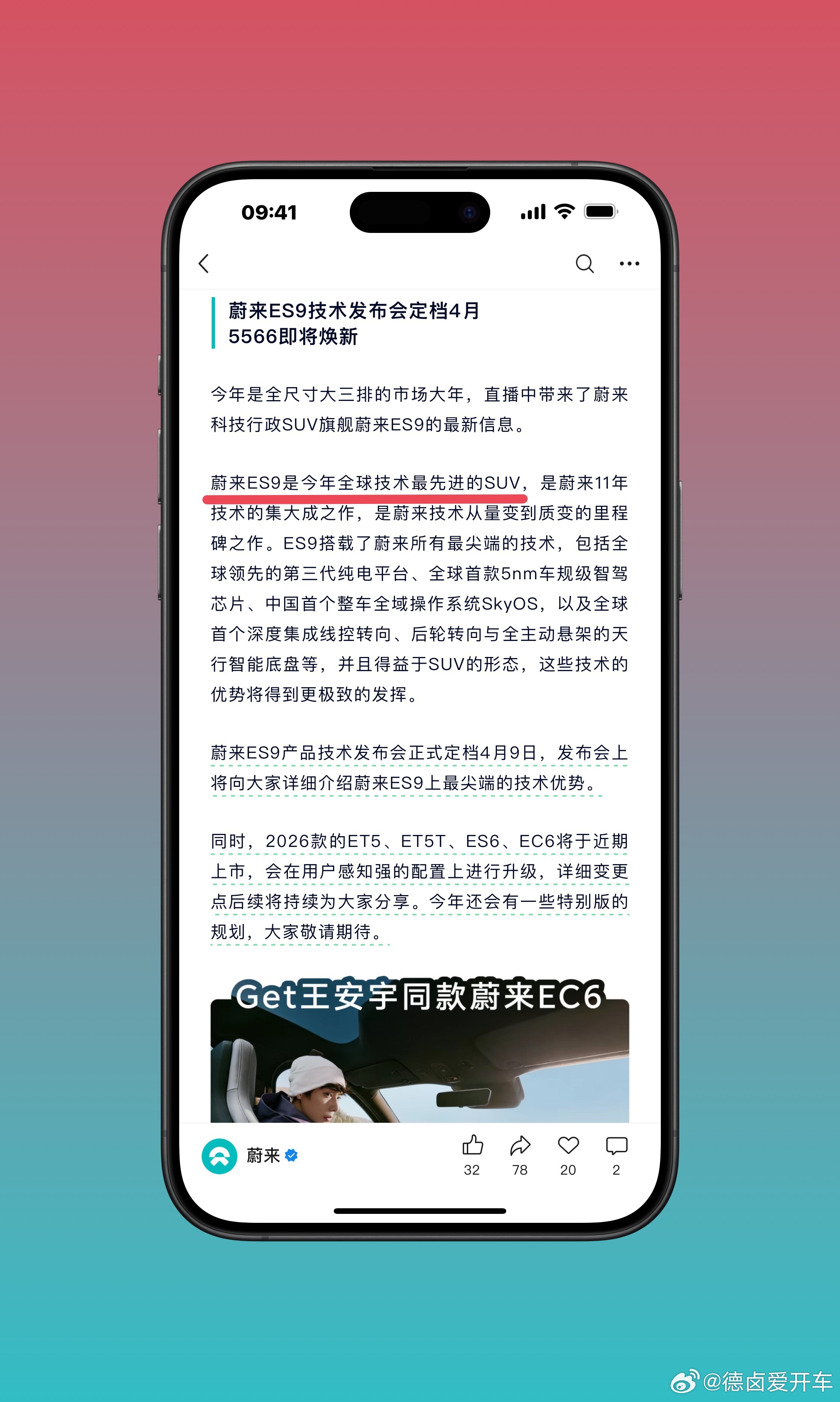 蔚来:【蔚来ES9是今年全球技术最先进的SUV】————————这里的形容很直接