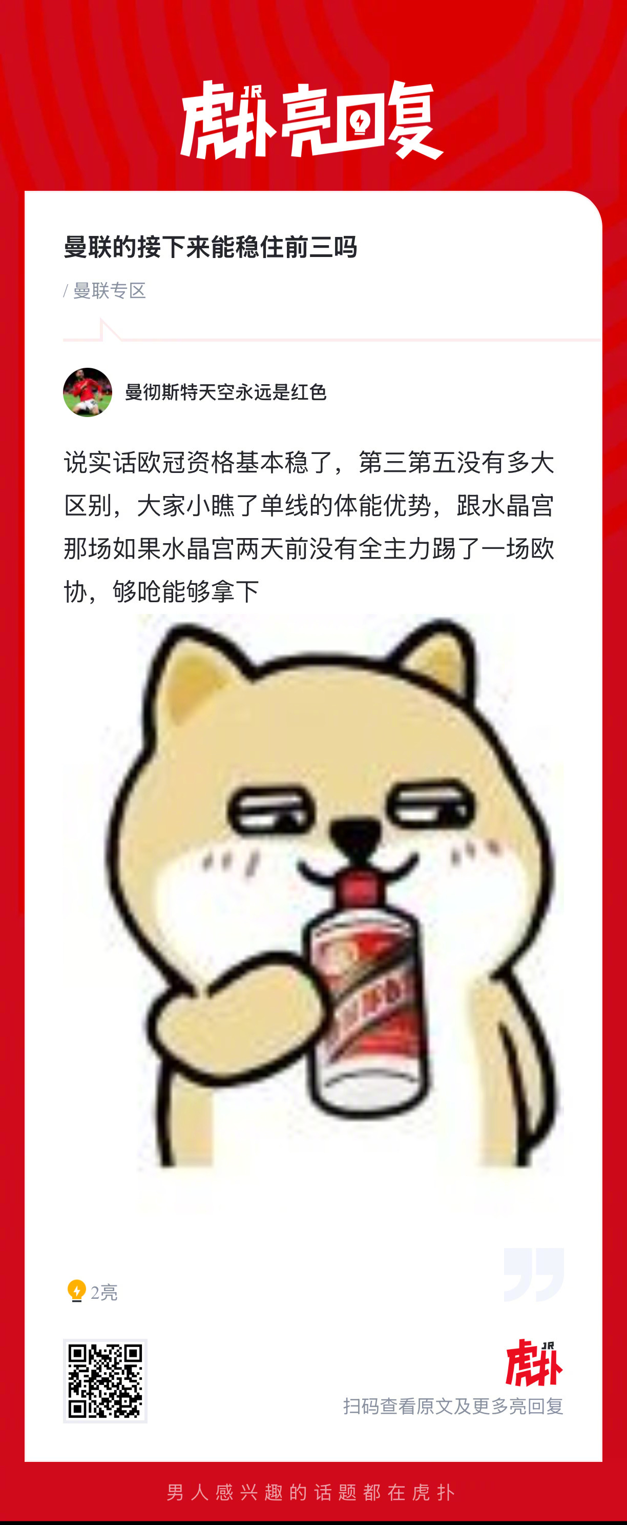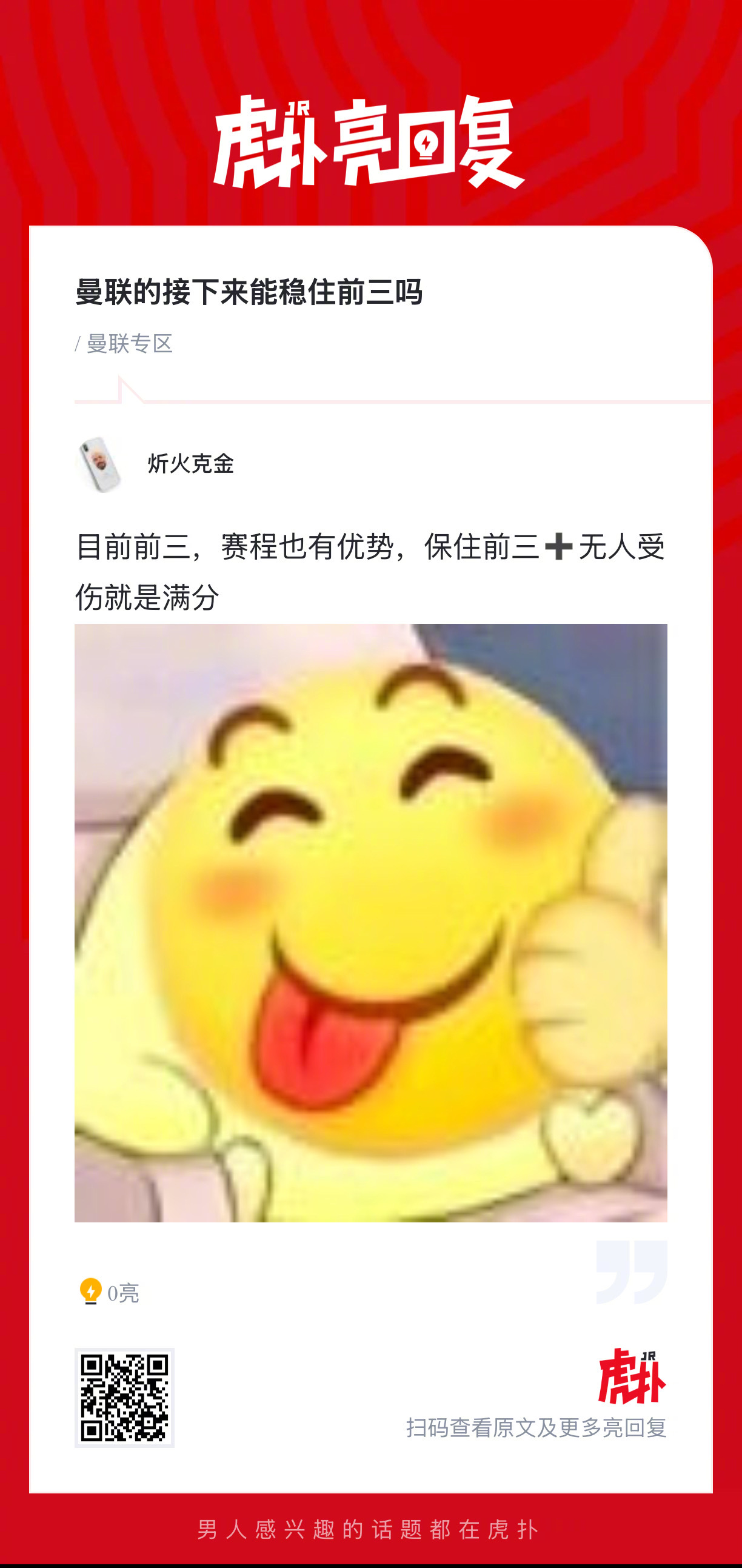红魔球迷来说说,你们觉得曼联接下来能稳住前三吗?