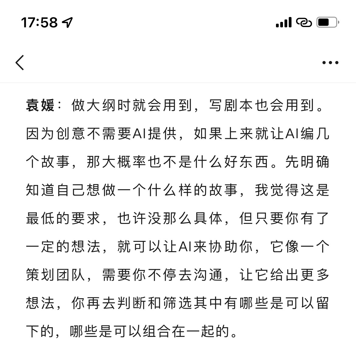 一个成熟的编剧是如何使用AI的把AI当助理,当责编,当策划去沟通,去脑暴,去天马行空AI是工具,错的不是工具,是人(图源《滚蛋吧!肿瘤君》《后来的我们》编剧袁媛)