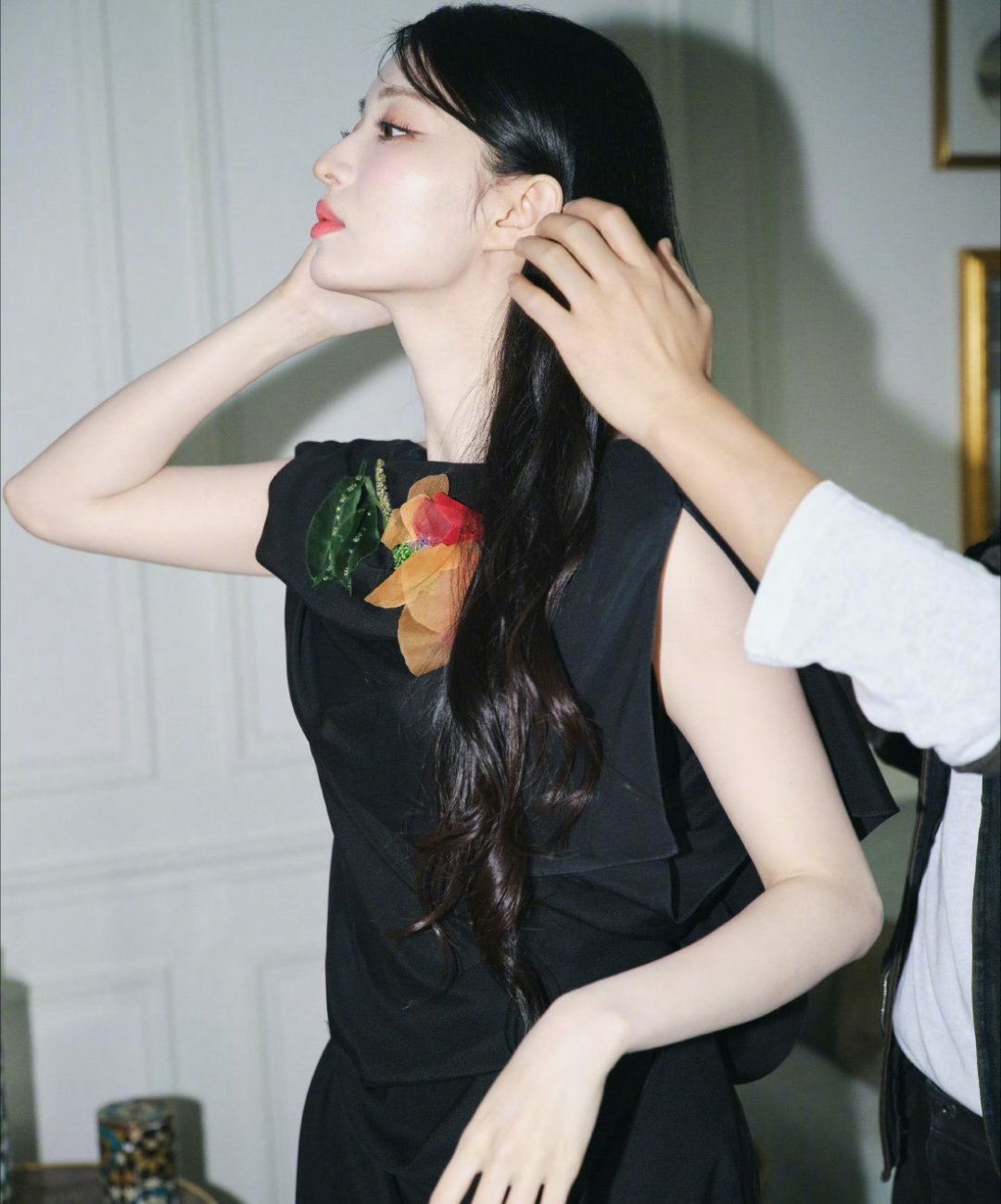 刘亦菲这条裤子挺养生,毕竟降温了肚脐眼必须护住啊