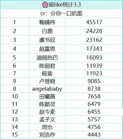 3月3日女明星超like排名