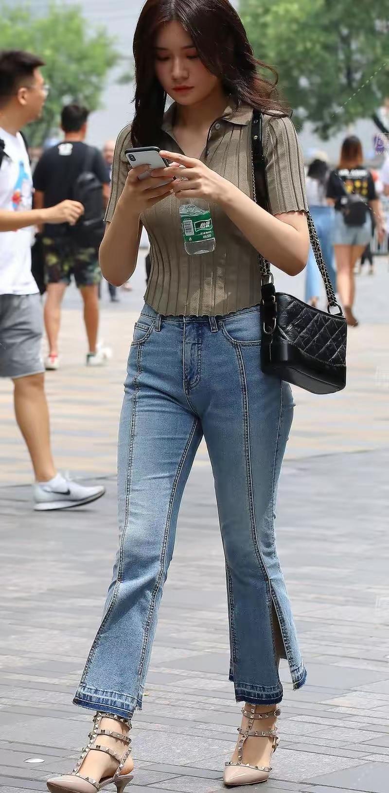 美女牛仔裤穿搭