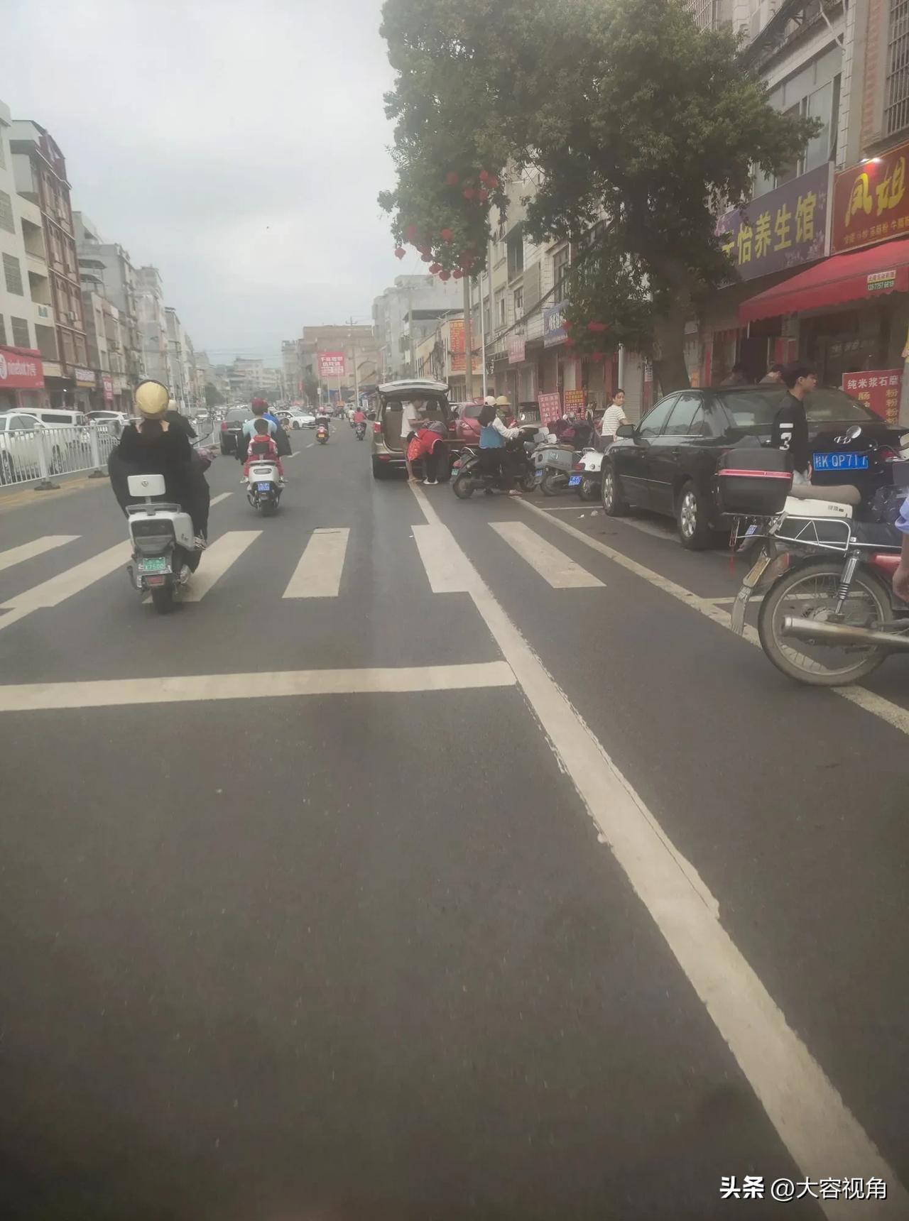 早上八点,民乐一中正式开学了,街道上一片热闹的景象。校门口的马路被来往的车辆和人群填得满满当当,电动车、摩托车、汽车交织在一起,显得有些拥挤。路边的店铺门口也站满了人,有的家长正帮孩子整理书包,有的在和孩子告别,叮嘱他们上课要认真。校门外的黄色网格线上,几辆白色轿车停在路边,司机们似乎在等人,或是刚刚送孩子到校。马路上,行人匆匆而过,有学生穿着校服三三两两地结伴而行,脸上洋溢着新学期的期待。 街道两旁的店铺开着门,一家养生馆的红色招牌在晨光中显得格外醒目,树上的红灯笼也为街道增添了一丝喜庆的氛围。天空微微泛着灰蓝色,可能是要下雨,但丝毫没有影响开学的热闹气氛。马路上的斑马线清晰可见,不时有学生和家长快速通过,前往学校。整个街道充满了新学期的活力,每个人都在为开学做着准备,学生们的欢声笑语和家长们的叮咛声交织在一起,构成了一幅忙碌而温馨的开学图景。