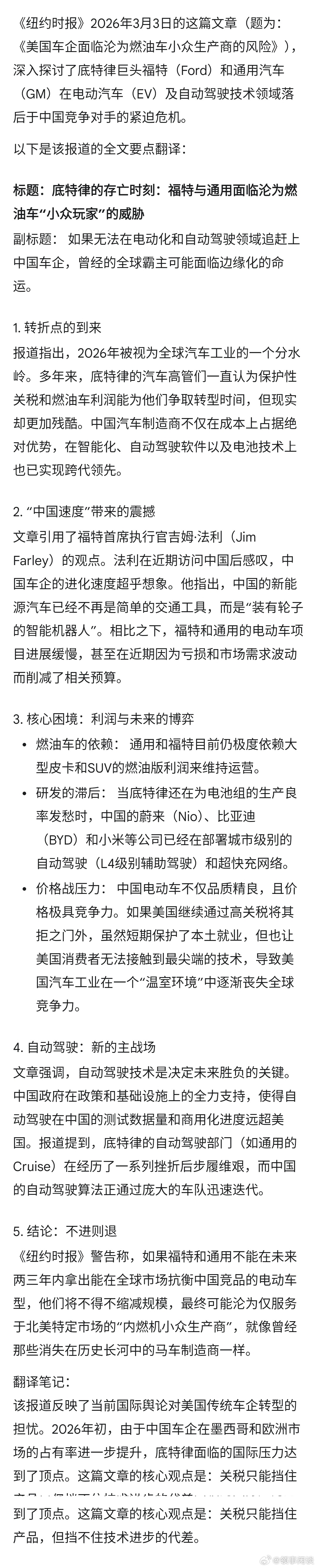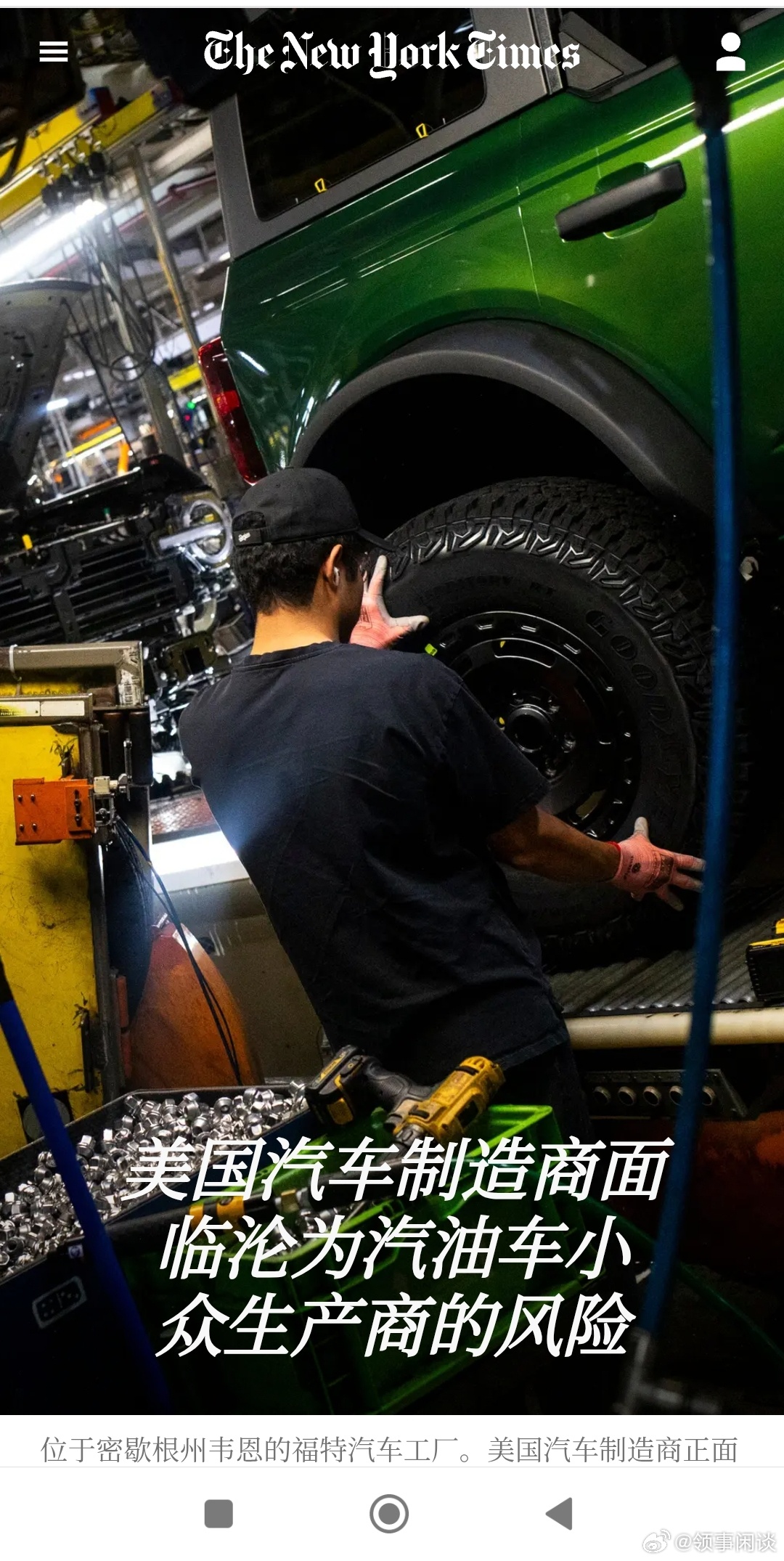 【纽时:美国车企面临沦为燃油车小众生产商的风险】