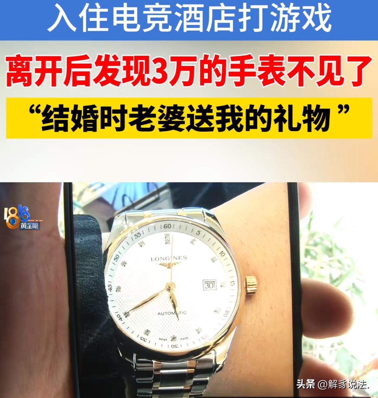 浙江义乌,男子和同学、表弟三人入住一家电竞酒店打游戏,离开时,发现手腕上的浪琴手