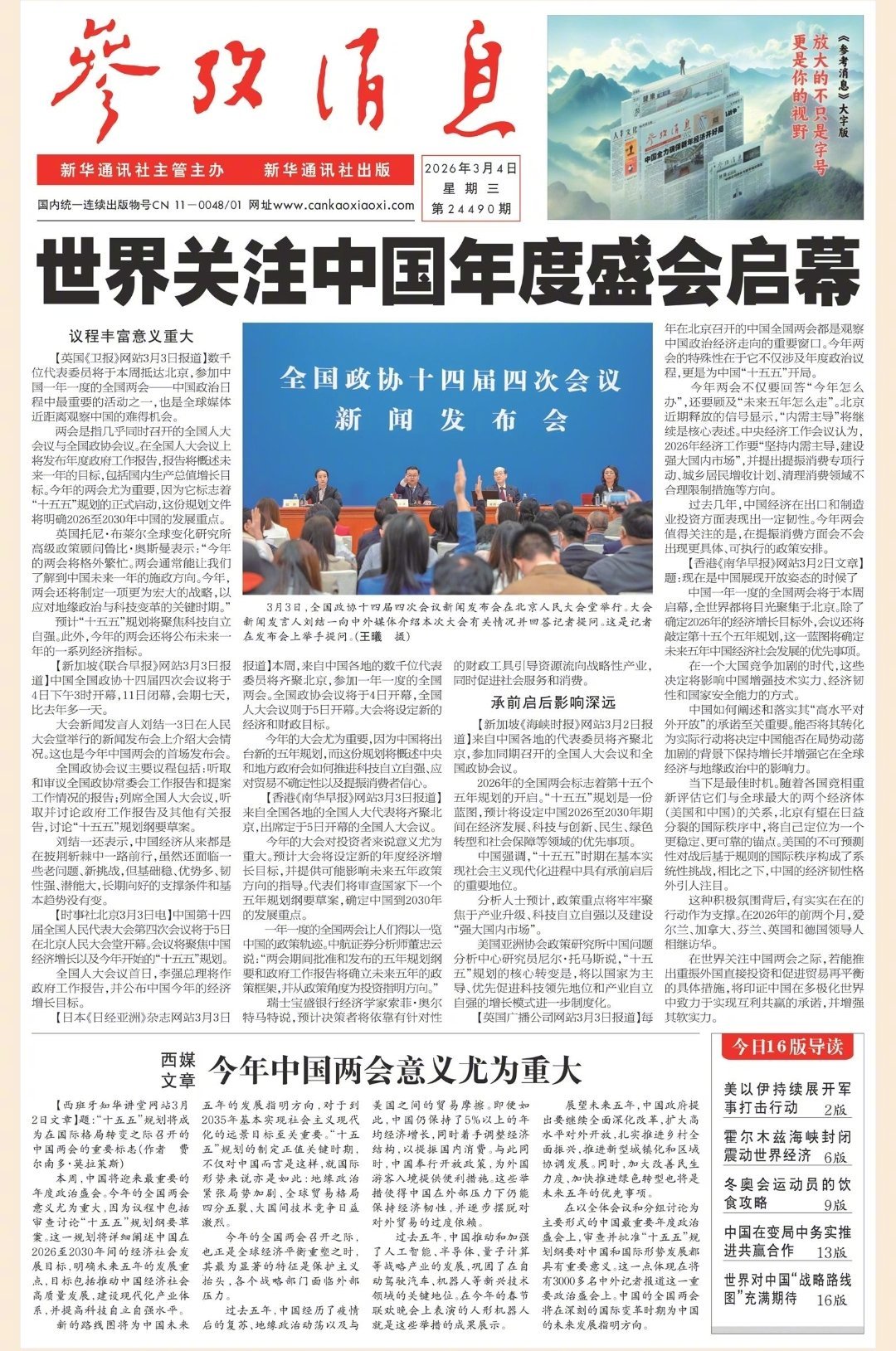 今日报纸头版:①世界关注中国年度盛会启幕②西媒文章:今年中国两会意义尤为重大更多消息请关注→网页链接