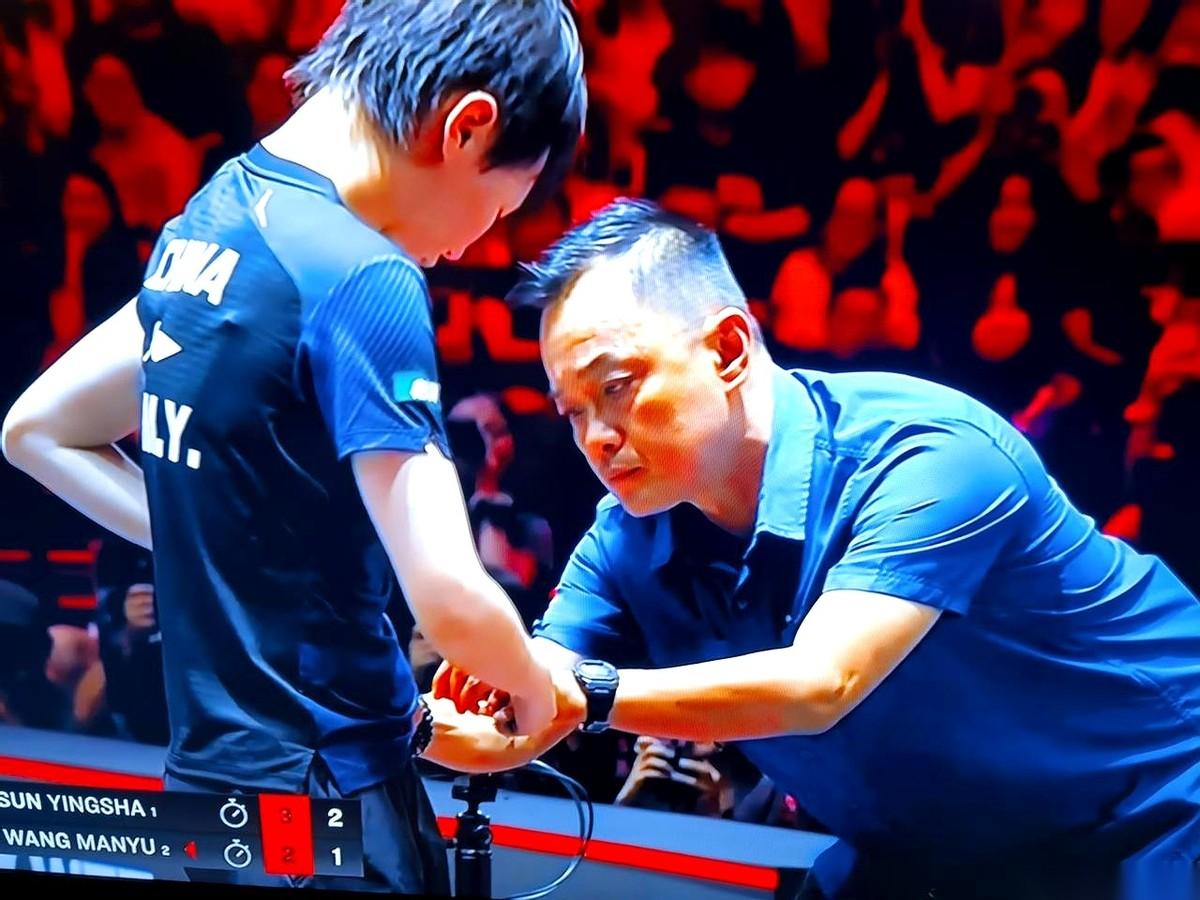 女单决赛,关键时刻,王曼昱猛地低头,不是看球,是盯着自己胸前那件定制战袍。只见一