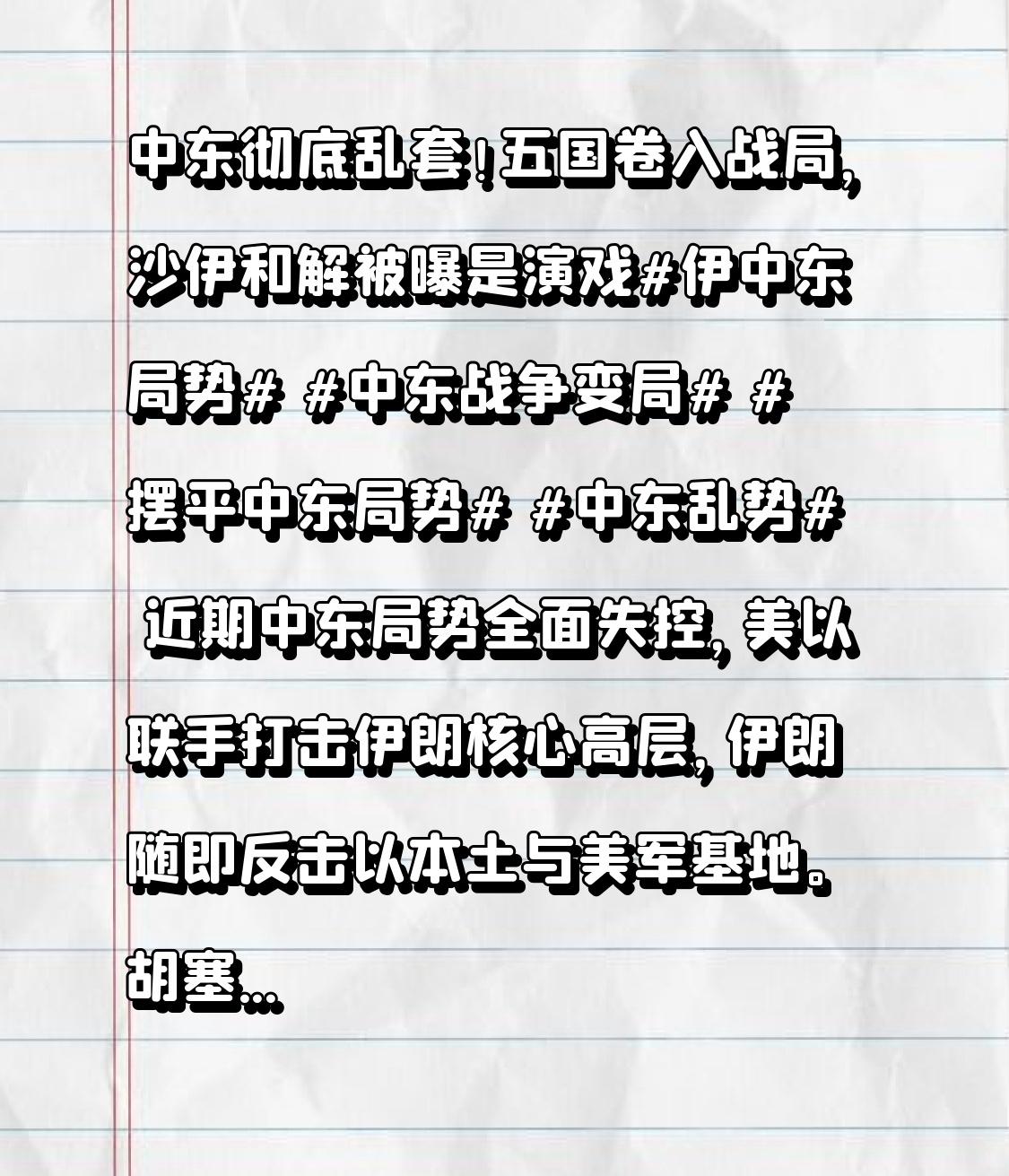 中东彻底乱套!五国卷入战局,沙伊和解被曝是演戏 伊中东局势 中东战争变局 摆平中东局势 中东乱势 近期中东局势全面失控,美以联手打击伊朗核心高层,伊朗随即反击以本土与美军基地。胡塞武装、黎巴嫩真主党迅速声援伊朗,英、法、德表态对伊行动,形成五国对三国的对抗格局,战火快速外溢。 美媒突然爆料,称沙特王储多次游说美方对伊朗动武,与此前沙伊和解姿态截然相反。若消息属实,意味着沙特一边维持和平形象,一边暗中拱火,连中国斡旋的和平成果也被利用。 美国此时放风,意在挑拨离间、转嫁矛盾。中东局势再次印证:国家之间没有永恒的朋友,只有永恒的利益,和平与算计往往只在一念之间。中东以伊冲突 伊朗平乱 沙特伊朗矛盾