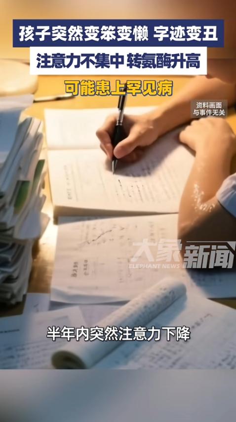 “家长们千万注意!”近日,福建,一男生成绩突然下滑,注意力变得不集中,书写也越来越潦草,家长带孩子到医院检查后,发现转氨酶升高,竟然是患上了一种罕见病,名为肝豆状核变性,俗称“铜娃娃病”,网友:这病我听都没听过! 事情是这样的,福建一名14岁的男生,之前成绩一直挺优异,可最近半年突然像变了个人似的。 成绩蹭蹭往下掉,上课的时候注意力根本集中不起来,老师讲课他总走神,作业也写得马马虎虎,最明显的是书写,以前工整清秀的字,变得越来越潦草,歪歪扭扭的,连自己的名字都写得不成样子。 家长一开始也没太当回事,以为孩子是进入叛逆期了,不爱学习、偷懒耍滑,念叨了几次也没见好转,反而看着孩子精神越来越差,有时候还会莫名乏力,这才慌了神,赶紧带孩子去医院做检查。 一开始检查,医生发现孩子的转氨酶明显升高,这说明肝脏可能出了问题,家长当时还纳闷,孩子平时不喝酒不熬夜,怎么会伤肝? 接着做了进一步的检查,结果出来后,所有人都懵了——孩子患上了一种罕见病,叫肝豆状核变性,俗称“铜娃娃病”。 说实话,这病我也是第一次听说,网上很多网友也留言说,听都没听过这种病。 后来了解才知道,这病是基因突变导致的,简单说就是身体里的铜排不出去,越积越多,沉积在肝脏和大脑里,慢慢损伤这两个重要器官。 我猜这家人一开始肯定和大多数家长一样,把孩子的异常归为学习态度问题,根本不会往罕见病上想。 毕竟这病太隐蔽了,初期症状和孩子叛逆、不爱学习太像,很容易被忽视。 而且这病的患病率不高,大概万分之一,尤其是在我们沿海地区,发病率相对高一点,可能和平时经常吃高铜的海鲜有关系。 医生说这病要是发现得晚,不及时治疗,孩子可能8岁后就会发展成肝硬化,15岁后还会出现不可逆的脑损伤,后果真的不敢想。 好在这家人发现得不算太晚,现在已经开始接受规范治疗,只要坚持低铜饮食、按时吃药,大部分患者的寿命能接近正常人。 其实很多时候,孩子的异常变化都不是偶然的,尤其是成绩、注意力、书写这些突然出现的波动,别光批评孩子不用心,说白了,孩子年纪小,不会表达自己的不舒服,全靠家长细心观察。 这个福建男生的例子,就是给所有家长提了个醒,如果家里孩子也出现不明原因的成绩下滑、注意力不集中,还有转氨酶升高的情况,别拖延,赶紧带孩子去做全面检查,排查一下这类罕见病。 毕竟罕见病不可怕,可怕的是忽视了早期信号,错过了最佳治疗时机,希望所有家长都能多留心,守护好自家孩子的健康。