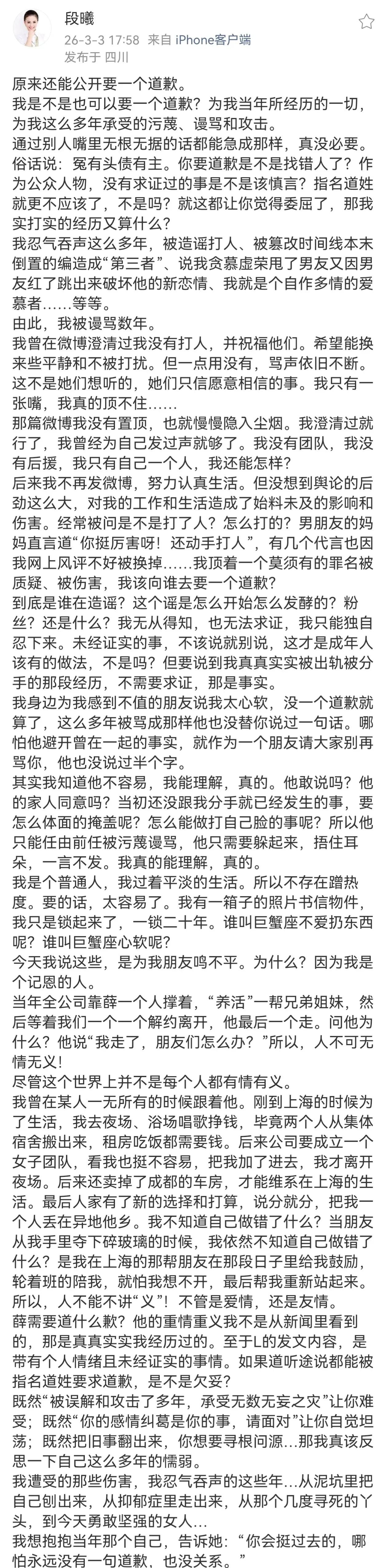 炸了!谢娜护夫反被锤,20年旧账被翻,恩爱全是假的? 家人们,娱乐圈大瓜来了!谢娜本想帮老公张杰出头,没想到捅了马蜂窝,直接把张杰前女友段曦炸出来了! 段曦直接千字长文放锤,说当年和张杰还没分手呢,男方就已经找好下家了,出轨实锤! 想当年,段曦陪着张杰吃苦,卖房卖车支持他音乐梦,最后却被无情抛弃,还背了几十年黑锅,被造谣打谢娜,简直太惨了! 这下好了,谢娜前脚刚霸气护夫,后脚脸就被打肿!这么多年营造的深情好男人人设,一夜之间彻底崩塌! 只能说,娱乐圈的恩爱,看看就得了,谁认真谁就输了! 明星感情 娱乐圈大瓜 段曦长文 张杰谢娜