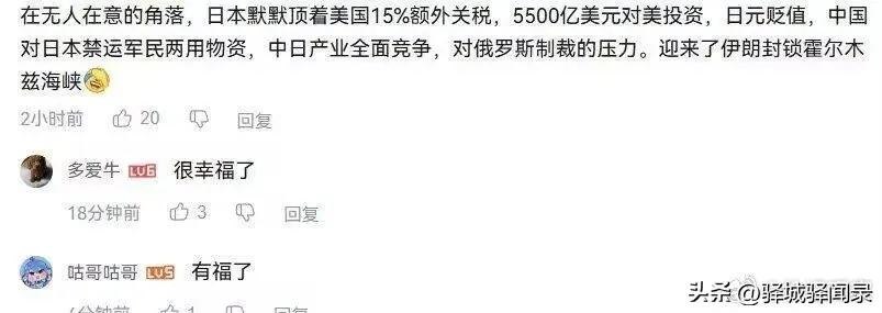 日本六福盈门 目前, 日本顶着美国15%额外关税,5500亿美元对美投资,日元贬值, 中国对日本禁运军民两用物资,日本物价上涨,对俄罗斯制裁带来的压力。伊朗封锁霍尔木兹海峡导致日本油轮出不来。 日本目前是压力山大。 不可否认日本的老底还是不错的。 至于能够坚持多久一切都只能看霍尔木兹海峡封锁多久。 目前日本的石油储备只能坚持254天,霍尔木兹海峡每封锁一天,都会给日本经济带来巨大的压力。 日本油价每涨10%,制造业成本升0.67%,出口降0.39%,加上日元贬值,周边国家的竞争,日本一个没有任何资源的国家有可能会突然崩溃。