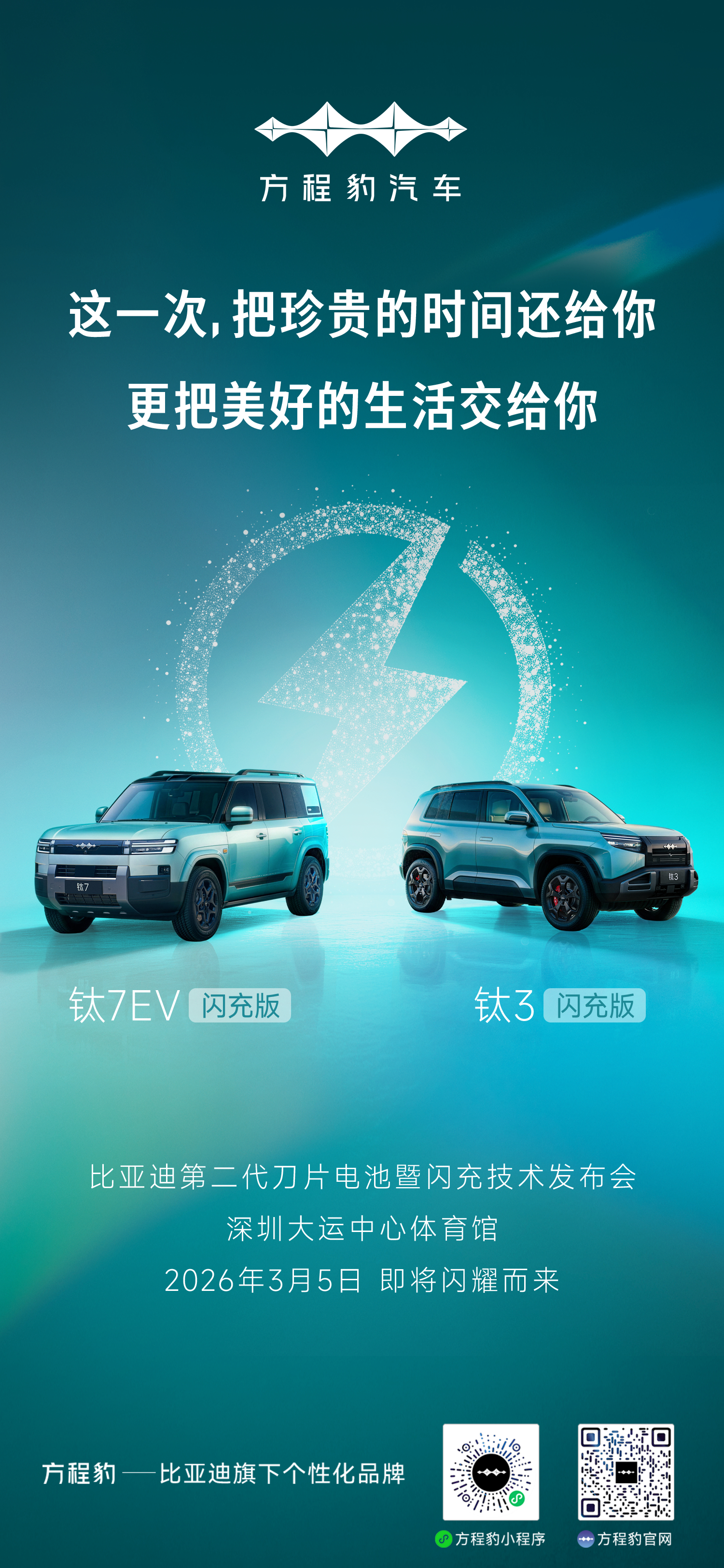3月5日,见证豹力闪充时刻!方程豹闪充车型来了方程豹闪充车型3月5日发布钛3钛7纯电版搭载闪充技术
