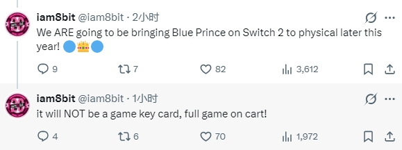 iam8bit在推特的回复中宣布,将会在今年晚些时候推出《蓝途王子》的Switch 2实体版,并且承诺《蓝途王子》实体版不是钥匙卡,而是完整的实体卡带,数字版已经推出,港服首发-34%折扣,售价123 HKD,游戏不支持中文。