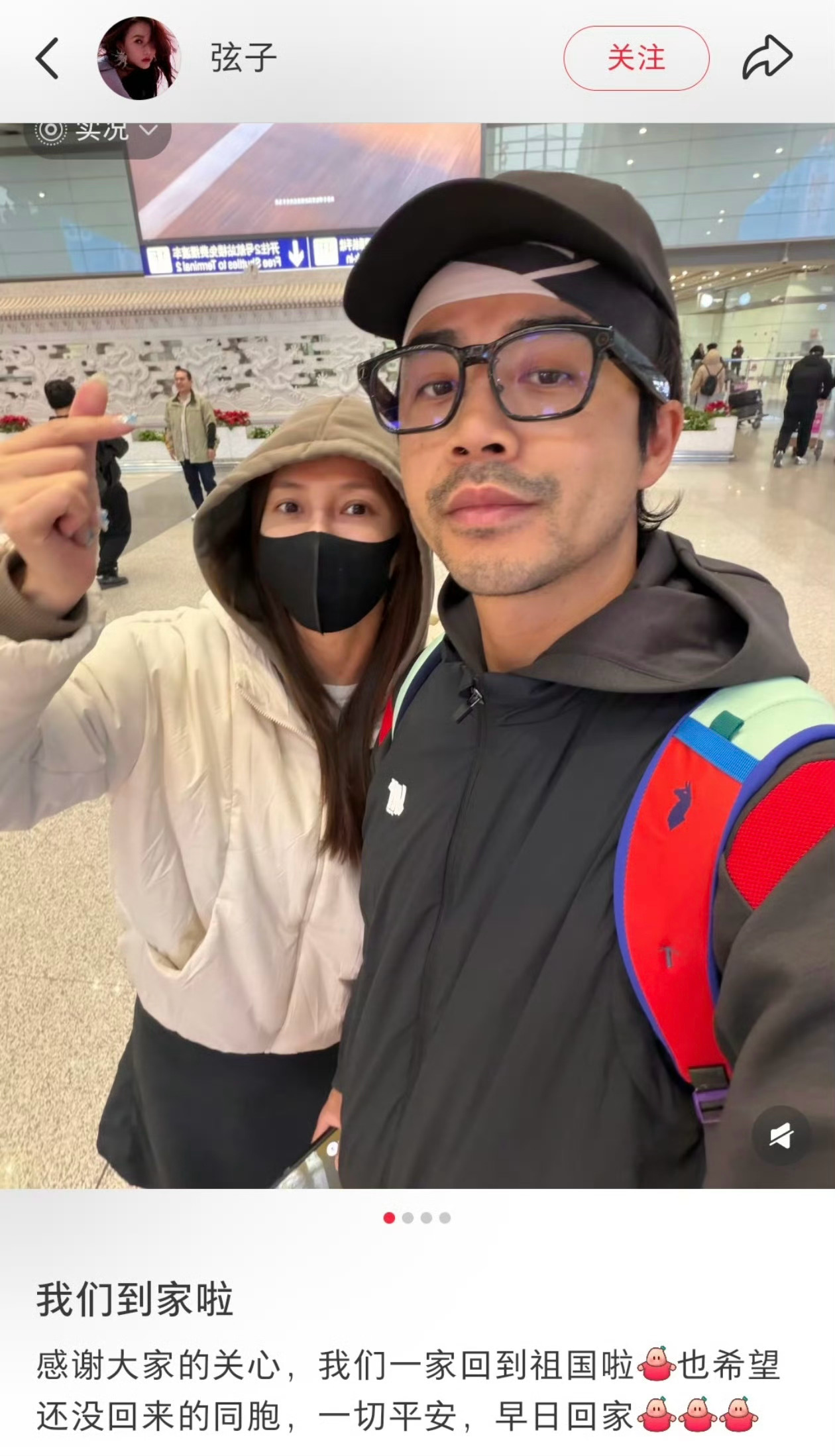 李茂弦子顺利到家 终于等到好消息!演员李茂和妻子弦子一家,此前因度假滞留迪拜,如今已顺利回到祖国怀抱👏他们自驾约11小时抵达阿曼,又几经辗转抢到机票,一路波折终于平安到家,也祝愿还未回国的同胞一切顺利,早日归来!!!