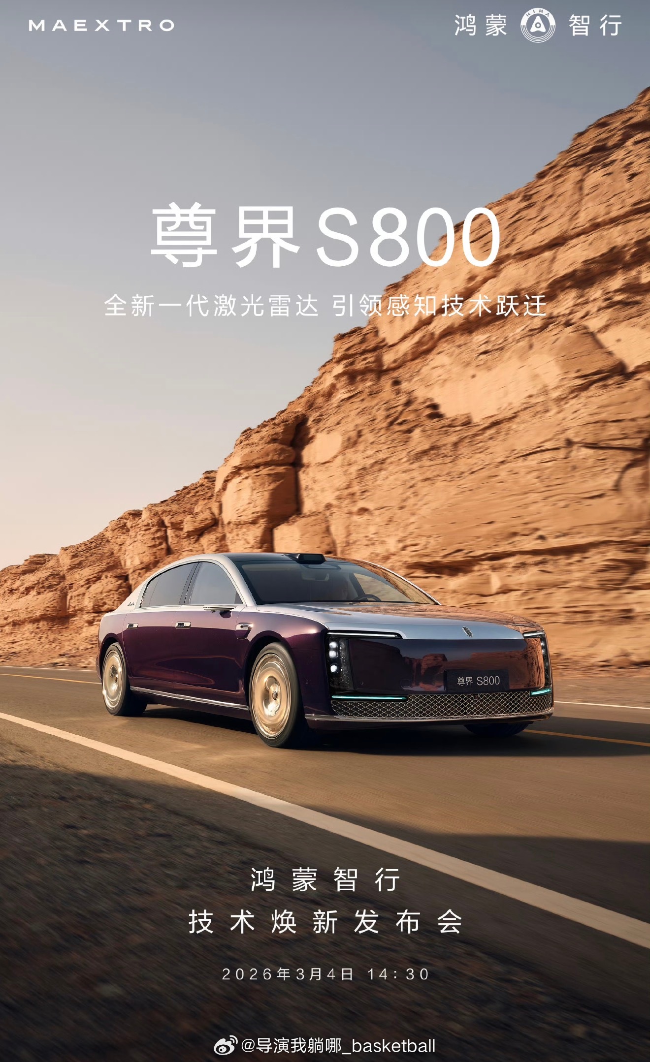时代新境,旗舰新生。鸿蒙智行技术焕新发布会 3月4日14:30,敬请期待!鸿蒙智行技术焕新发布会