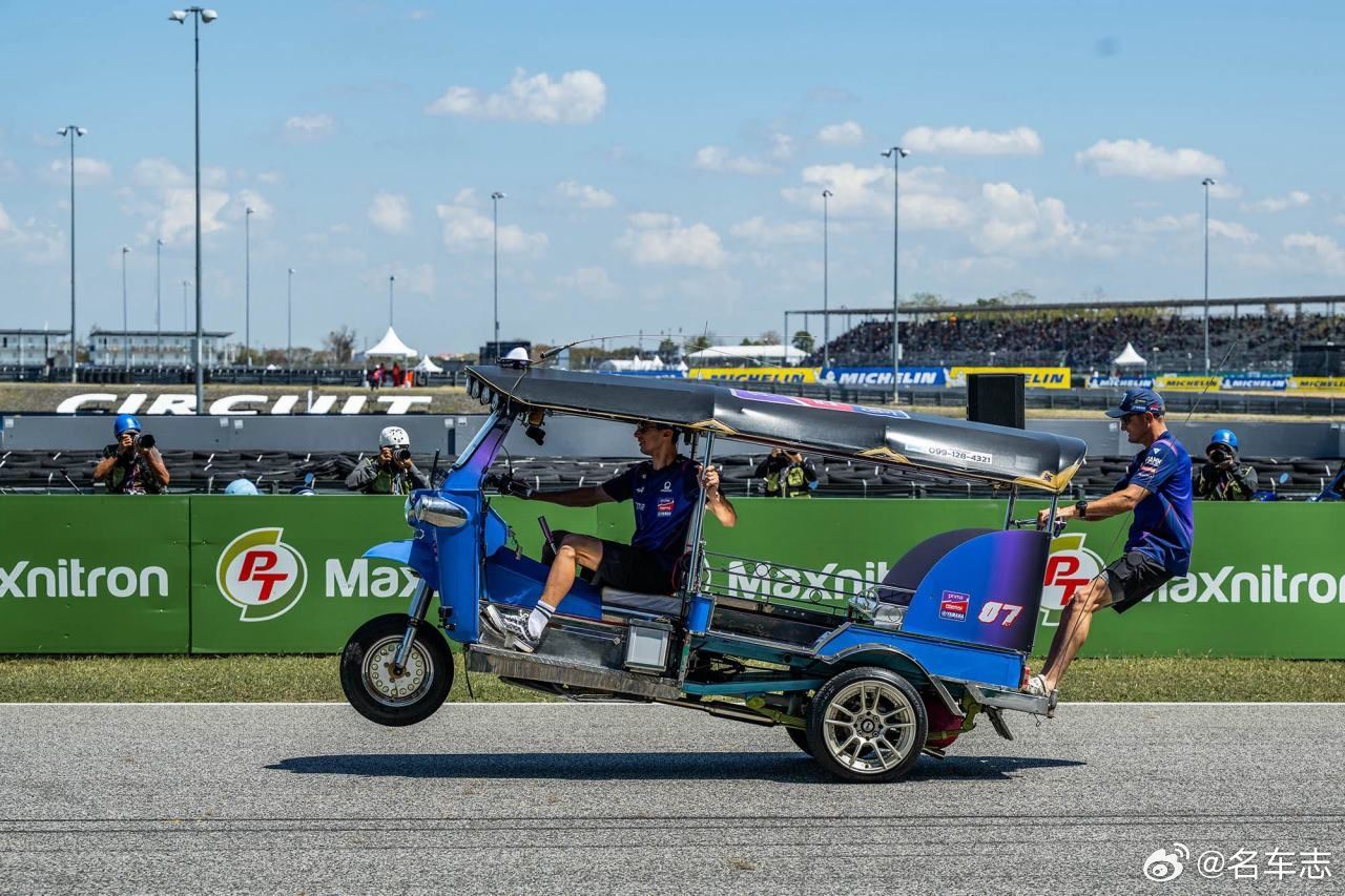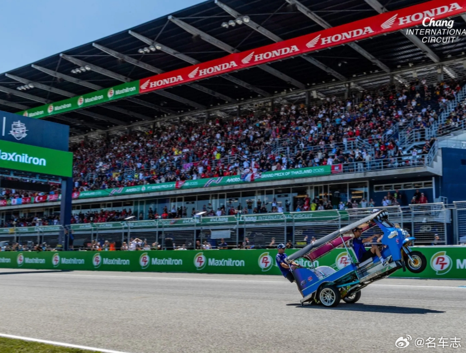 名车志Sport 【2026赛季MotoGP世界摩托车锦标赛以一场别开生面的“暖场秀”在泰国武里南府拉开帷幕】主办方打破传统推出创意暖场活动 “嘟嘟车挑战赛”,让这项泰国街头常见的三轮交通工具登上了国际赛车舞台。赛事邀请 11 支顶尖车队的 22 名世界顶级车手参赛,比赛以一圈赛道竞速展开,每辆嘟嘟车由两名车手搭档并需在指定弯道换手驾驶,WorldSBK 卫冕冠军托普拉克・拉兹加特里奥卢与四届 MotoGP 分站冠军杰克・米勒组成的搭档表现亮眼,二人从暖身圈就秀出嘟嘟车翘前轮特技,比赛中还上演侧倾两轮过弯的精彩操作,最终拿下挑战赛冠军。