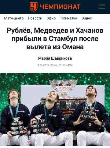 “三夫”已经顺利出逃迪拜。 据卢布列夫的母亲证实,此前因为伊朗对阿联酋美军基地的轰炸, 在迪拜滞留的梅德韦杰夫,卡恰诺夫和卢布列夫已经乘飞机离开迪拜前往土耳其伊斯坦布尔。 他们将从土耳其转机前往美国,应该可以赶上即将开始的印第安维尔斯的比赛。 真是个好消息。