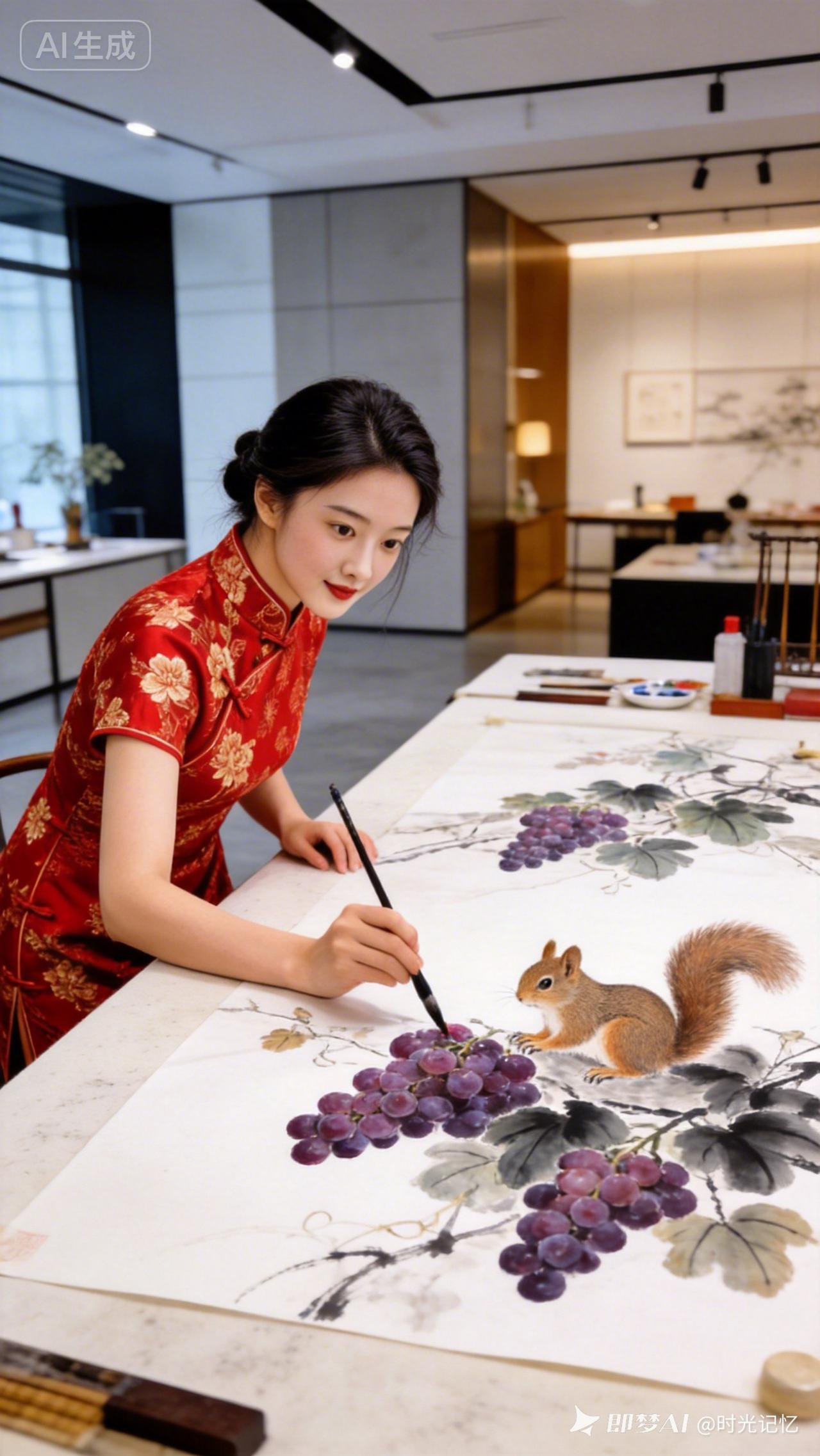 “穿越时空的优雅,红衣女子绘制东方韵味”🌸🖼️