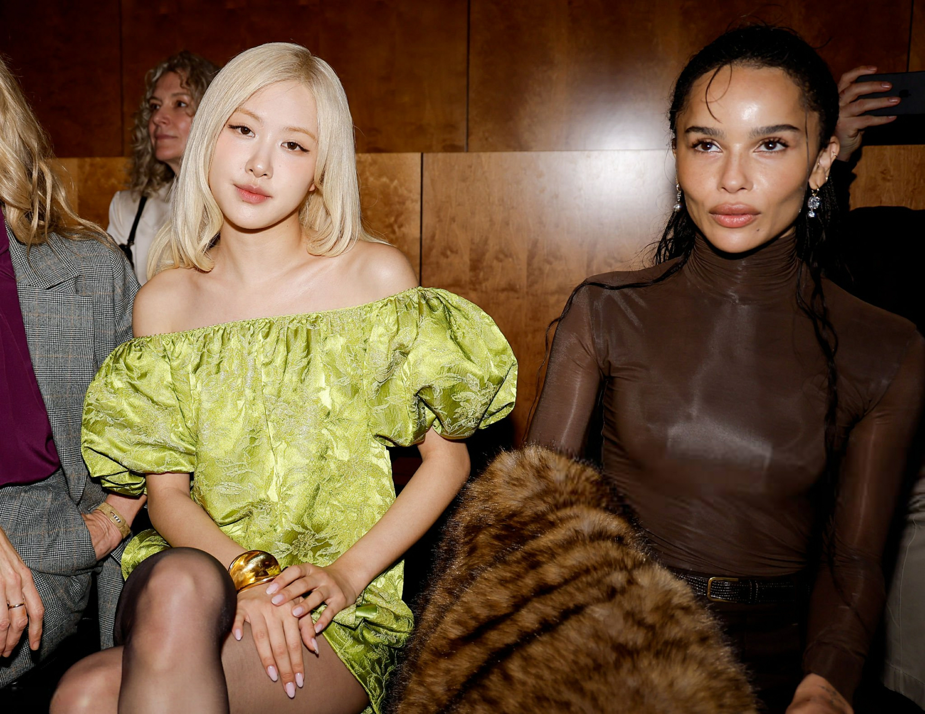 ROSÉ朴彩英超美亮相巴黎时装周看秀~~还和Kate Moss以及Zoe Kravitz同框!朴彩英绿裙看秀