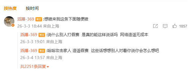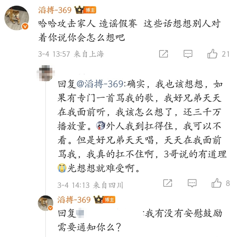 369还有后续就在刚刚369继续微博回复昨晚的网友,这个时间点是睡醒了准备要和网友对线了嘛?BLG对战JDG2026lpl第一赛段英雄联盟