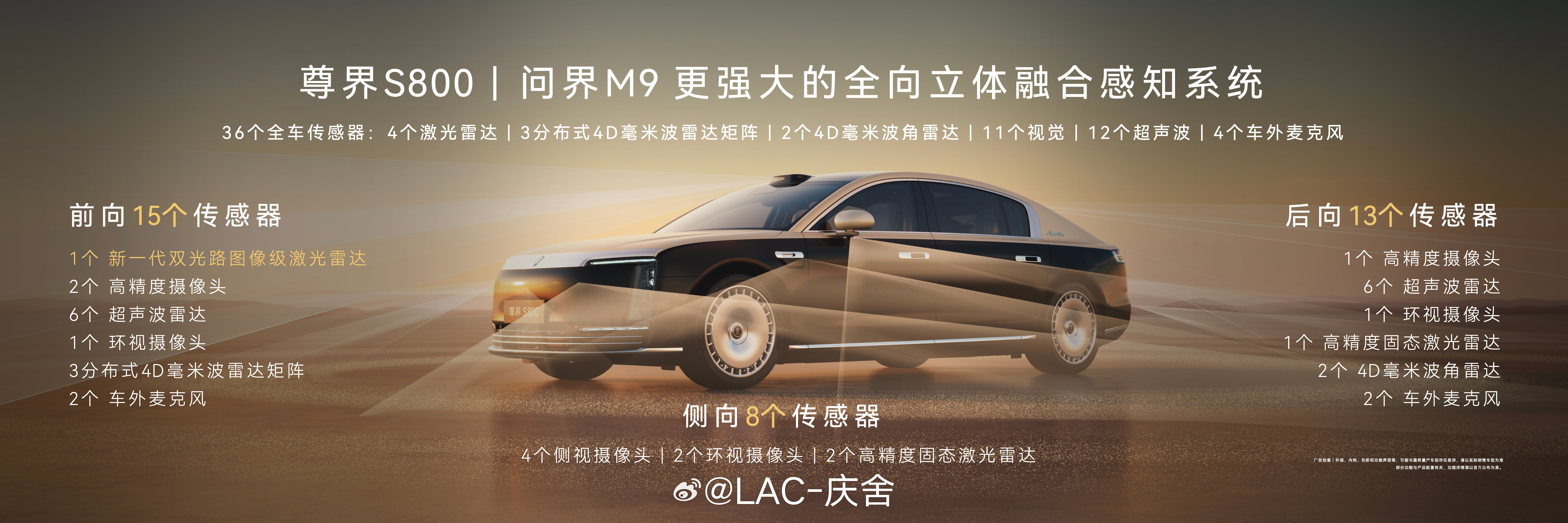 华为发布会 尊界S800与问界M9同步首发搭载新一代896线激光雷达,全向立体融合感知系统更强大,感知范围更广,覆盖更多难例场景。相较于192线,分辨率提高4倍尊界融合感知能力断代领先
