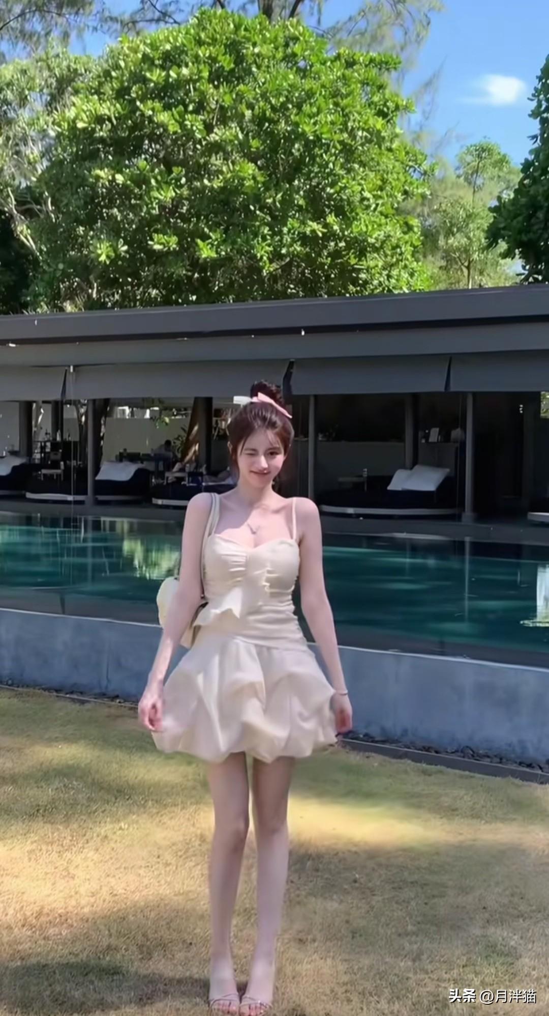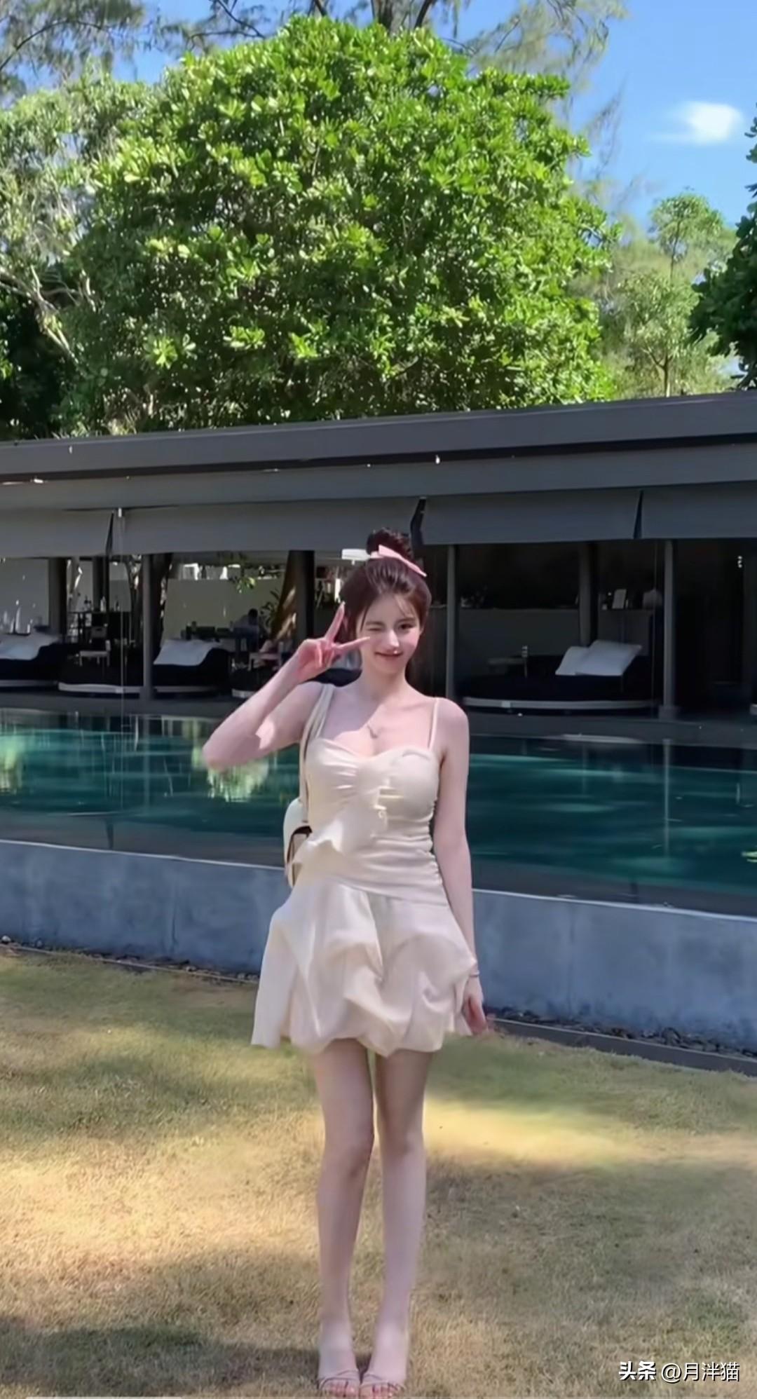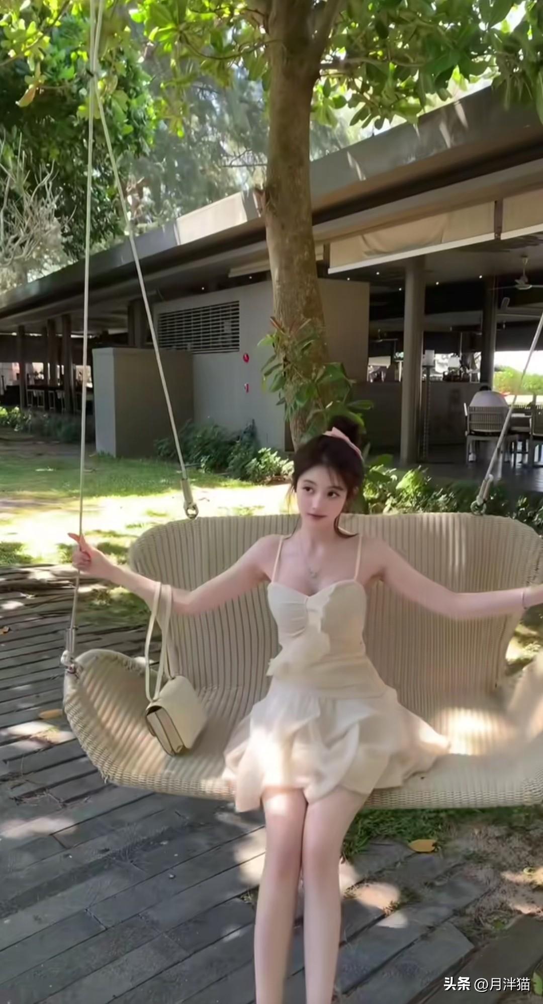 夏日度假,当然要拥有一套纯欲穿搭,在泳池边尽情美拍!不妨选一条白色蕾丝吊带裙,蕾丝材质本就自带温柔气息,吊带裙的款式又透着一丝小性感。搭配一双高跟凉鞋,再把头发束起,纯欲氛围便轻松营造出来了。 站在泳池边,阳光倾洒在身上,随意一拍都极具美感。可以微微歪头,比个剪刀手,露出可爱表情,目光望向远方;也可以轻撩秀发,展现不经意间的美。最后坐在摇椅上荡秋千,照片会更具氛围感。夏日就该这般美美的度假自拍,留下美好回忆! 图片来源于网络,侵权删。