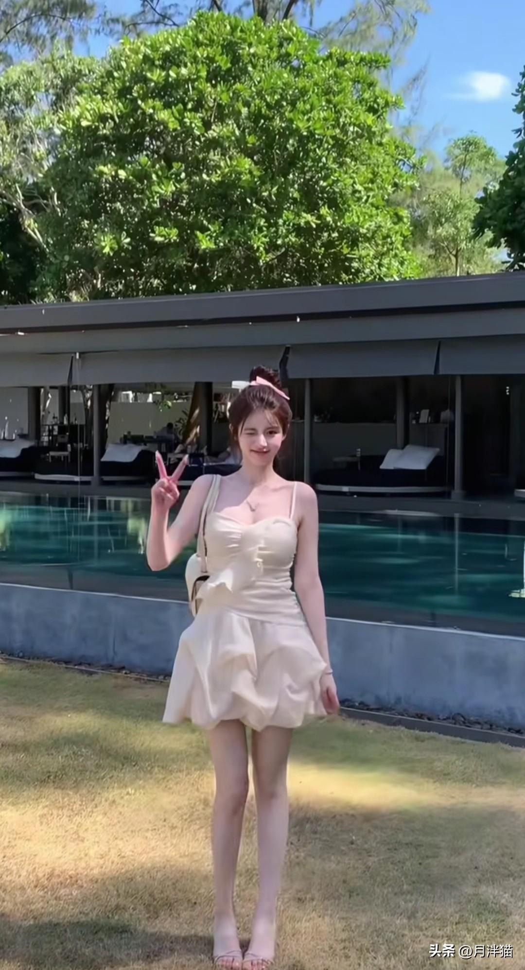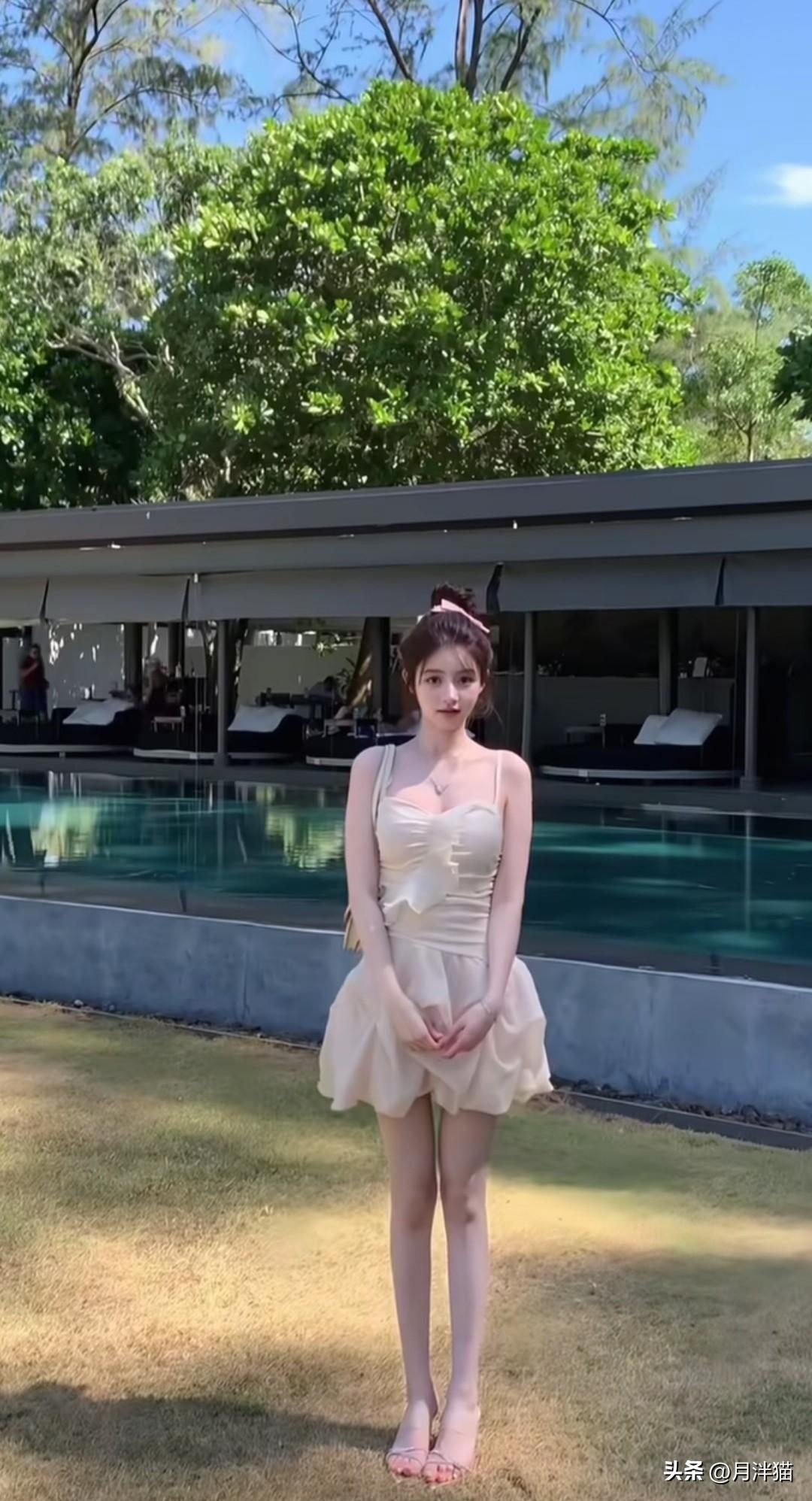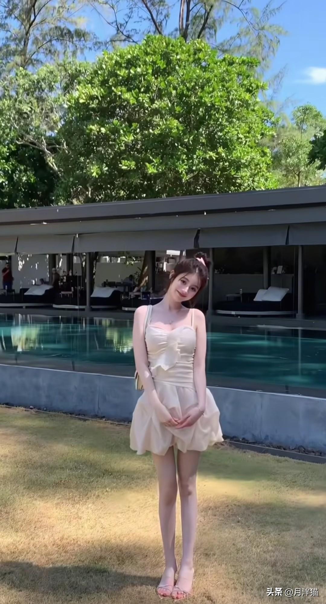 夏日度假,当然要拥有一套纯欲穿搭,在泳池边尽情美拍!不妨选一条白色蕾丝吊带裙,蕾丝材质本就自带温柔气息,吊带裙的款式又透着一丝小性感。搭配一双高跟凉鞋,再把头发束起,纯欲氛围便轻松营造出来了。 站在泳池边,阳光倾洒在身上,随意一拍都极具美感。可以微微歪头,比个剪刀手,露出可爱表情,目光望向远方;也可以轻撩秀发,展现不经意间的美。最后坐在摇椅上荡秋千,照片会更具氛围感。夏日就该这般美美的度假自拍,留下美好回忆! 图片来源于网络,侵权删。